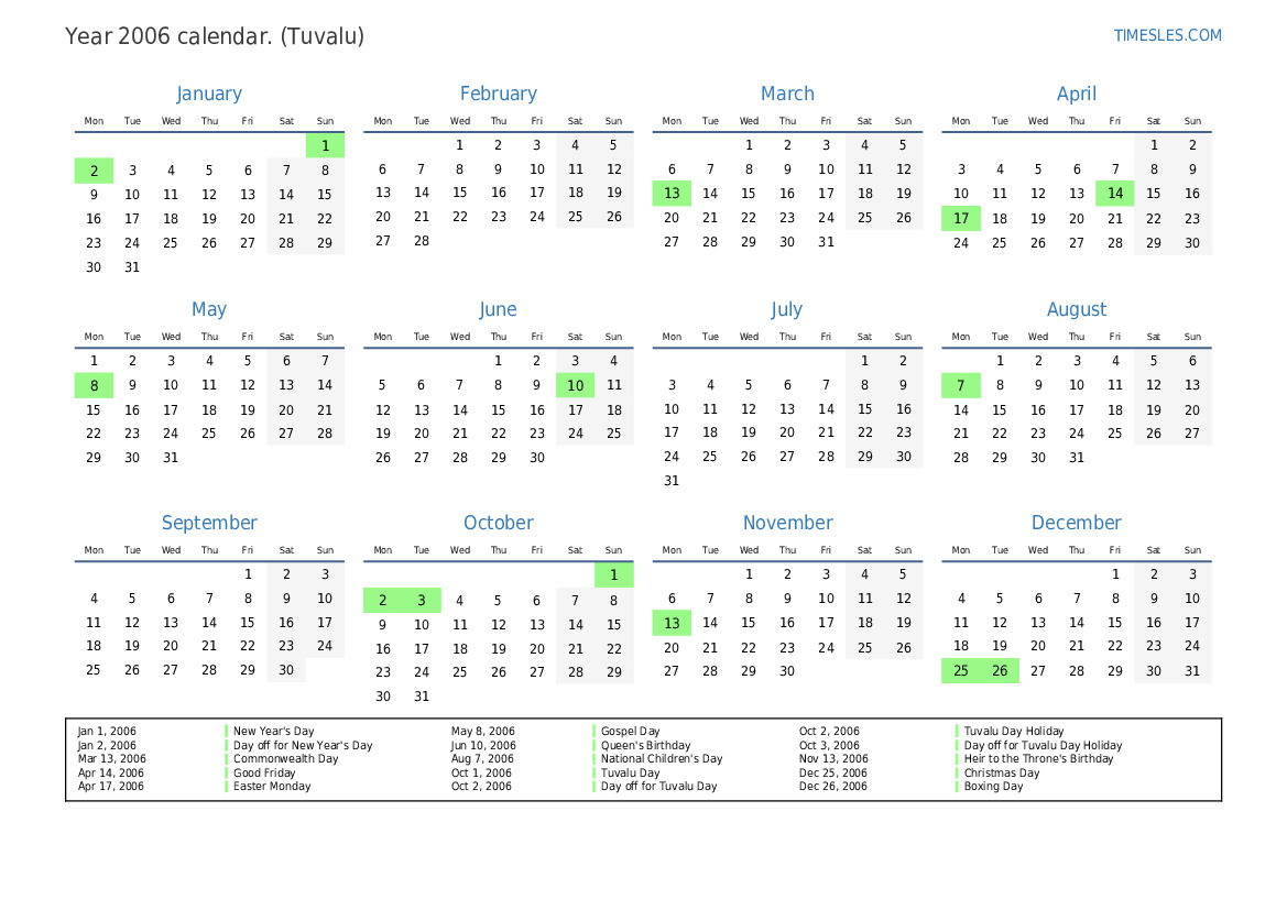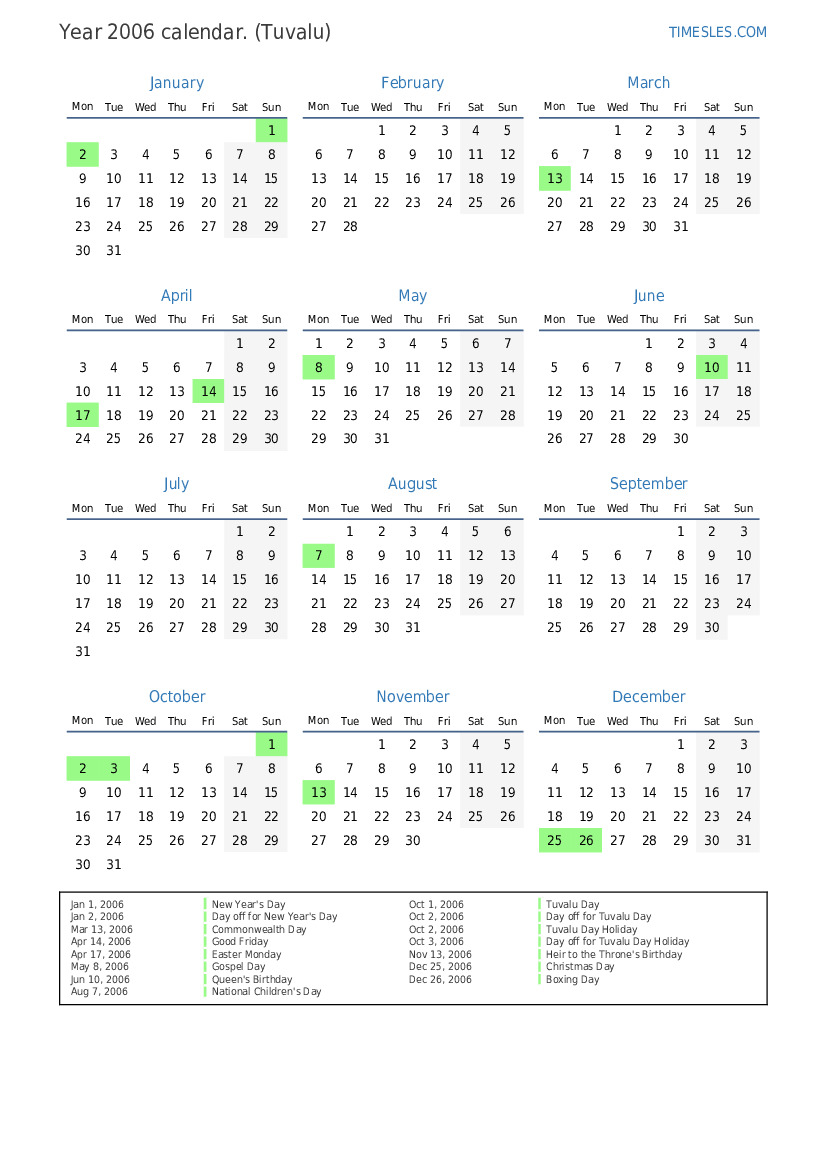 Oct 3, 2006 Day off for Tuvalu Day Holiday