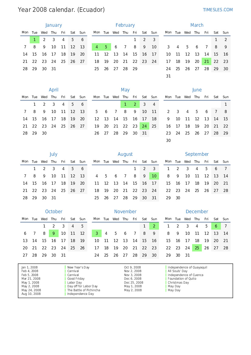 Feb 9, 2008 Special working day (compensation for Carnival Monday)