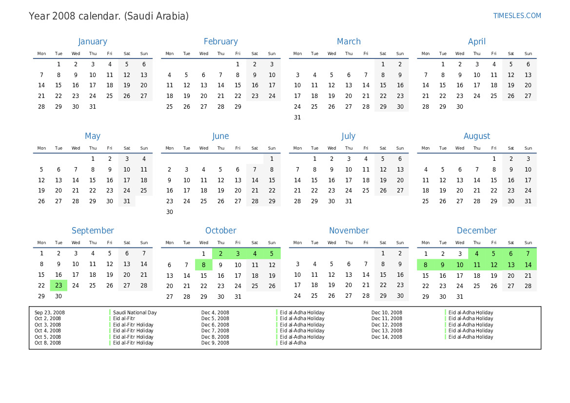 Oct 6, 2008 Eid al-Fitr Holiday (public sector only)