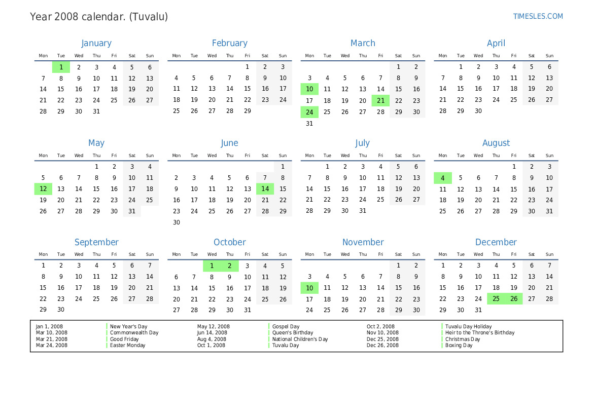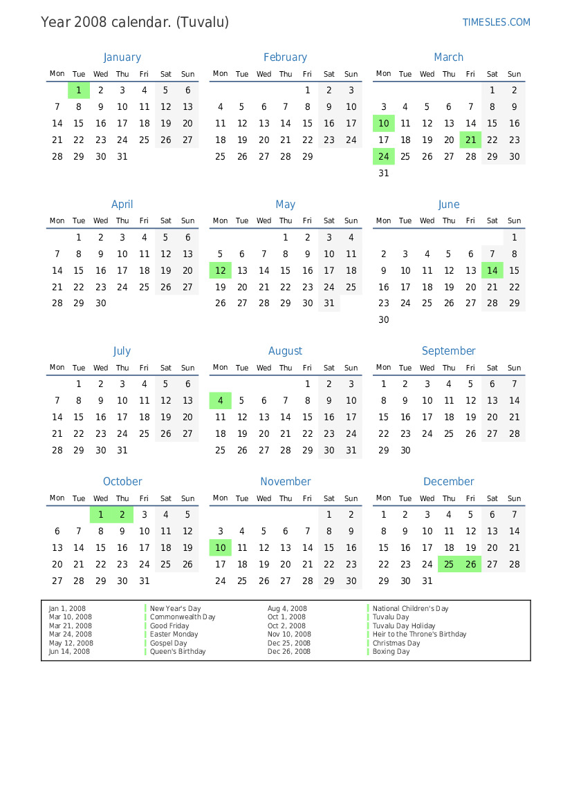 Oct 2, 2008 Tuvalu Day Holiday
