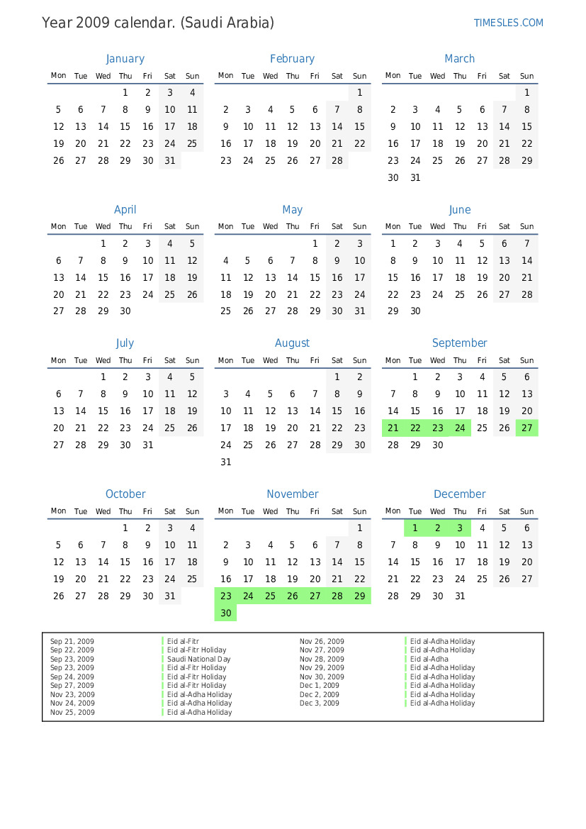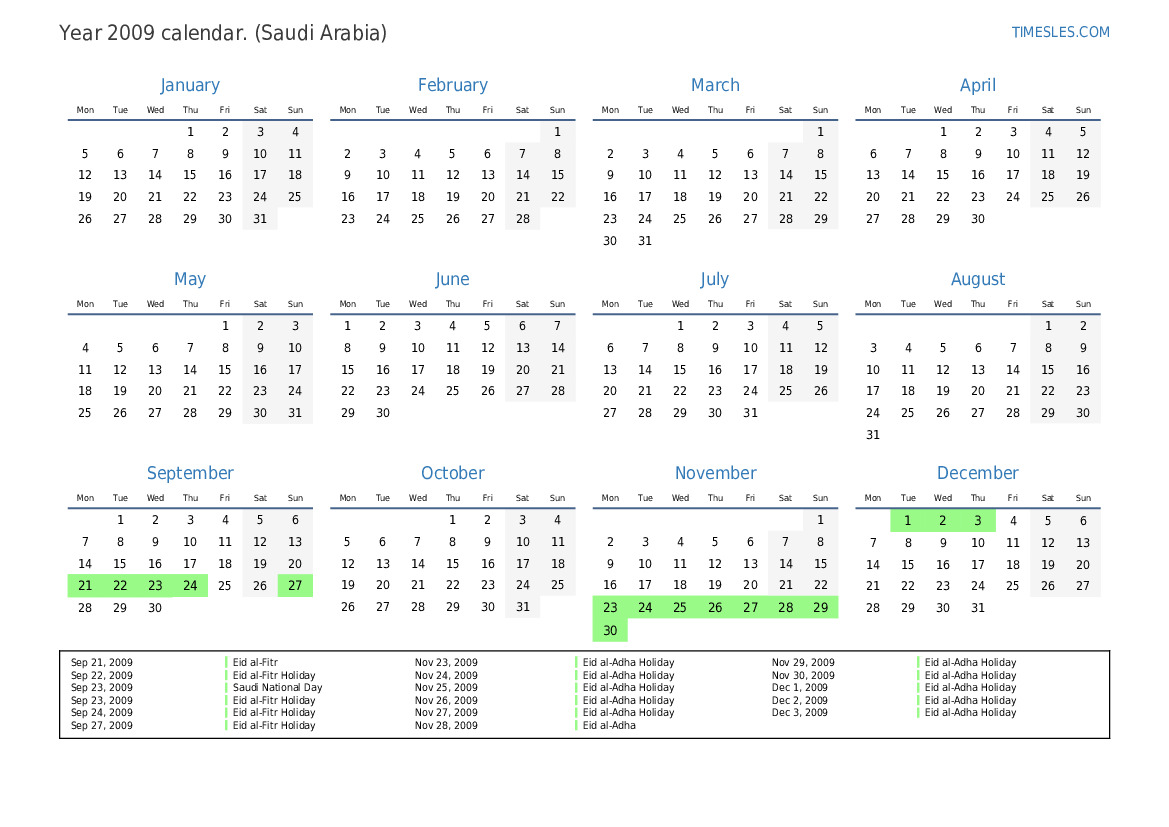 Sep 25, 2009 Eid al-Fitr Holiday (public sector only)