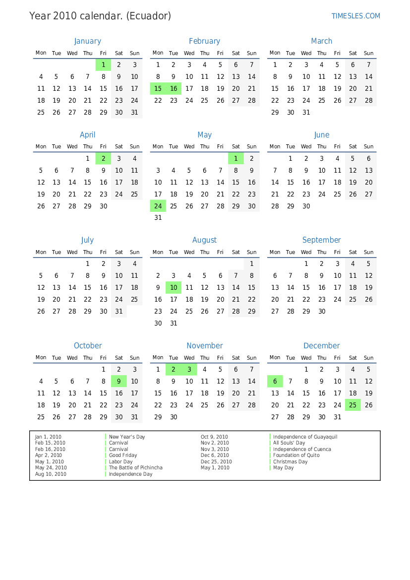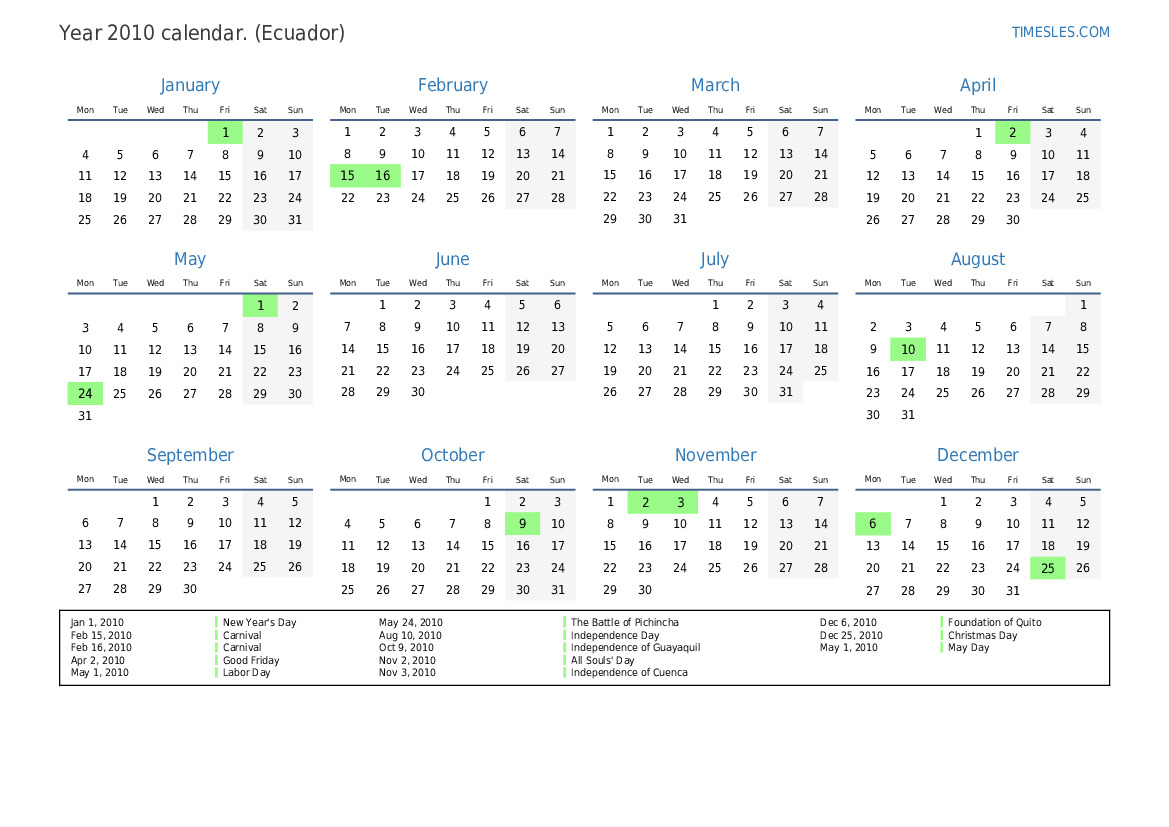 Feb 20, 2010 Special working day (compensation for Carnival Monday)