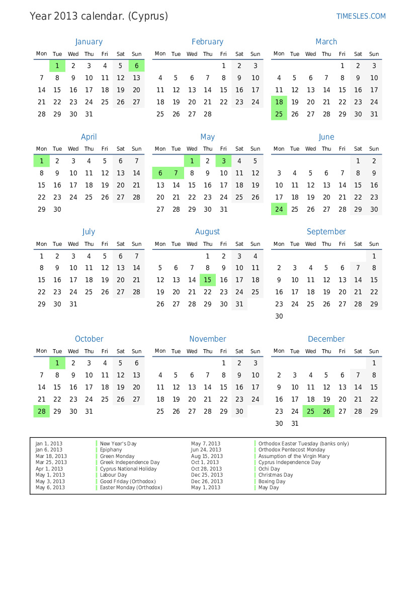 May 7, 2013 Orthodox Easter Tuesday (banks only)