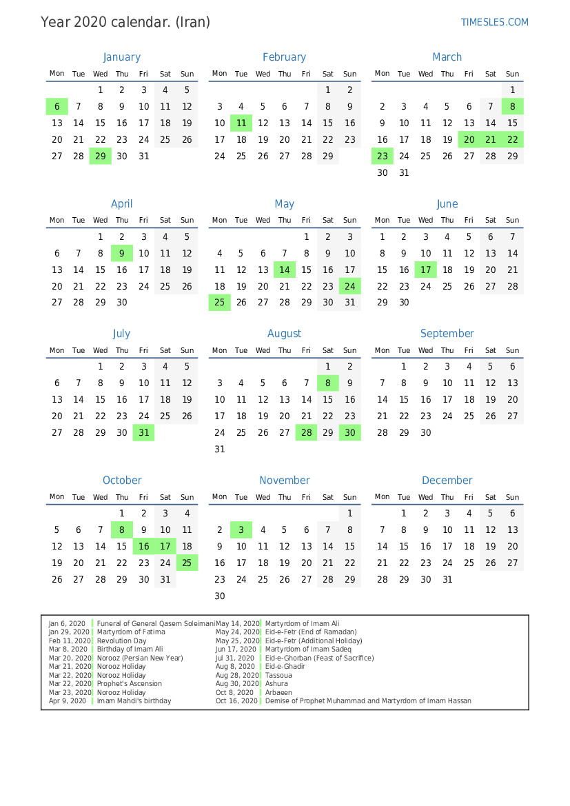 May 25, 2020 Eid-e-Fetr (Additional Holiday)