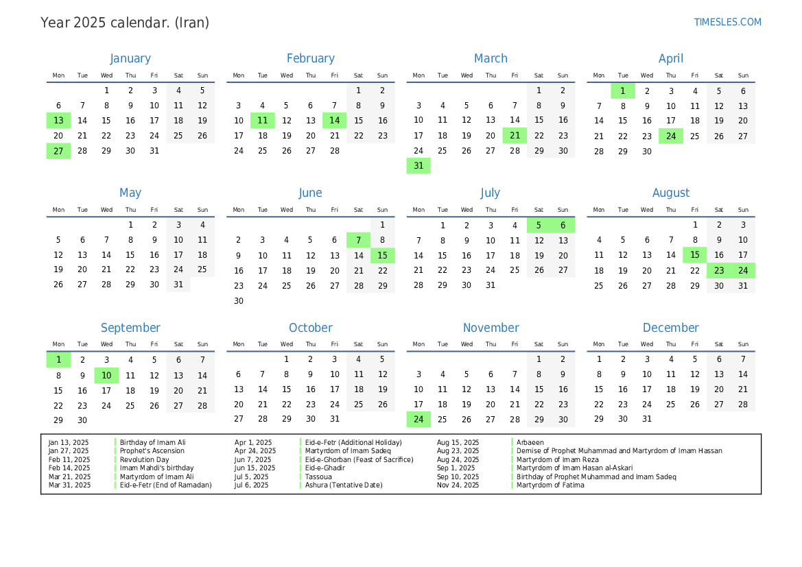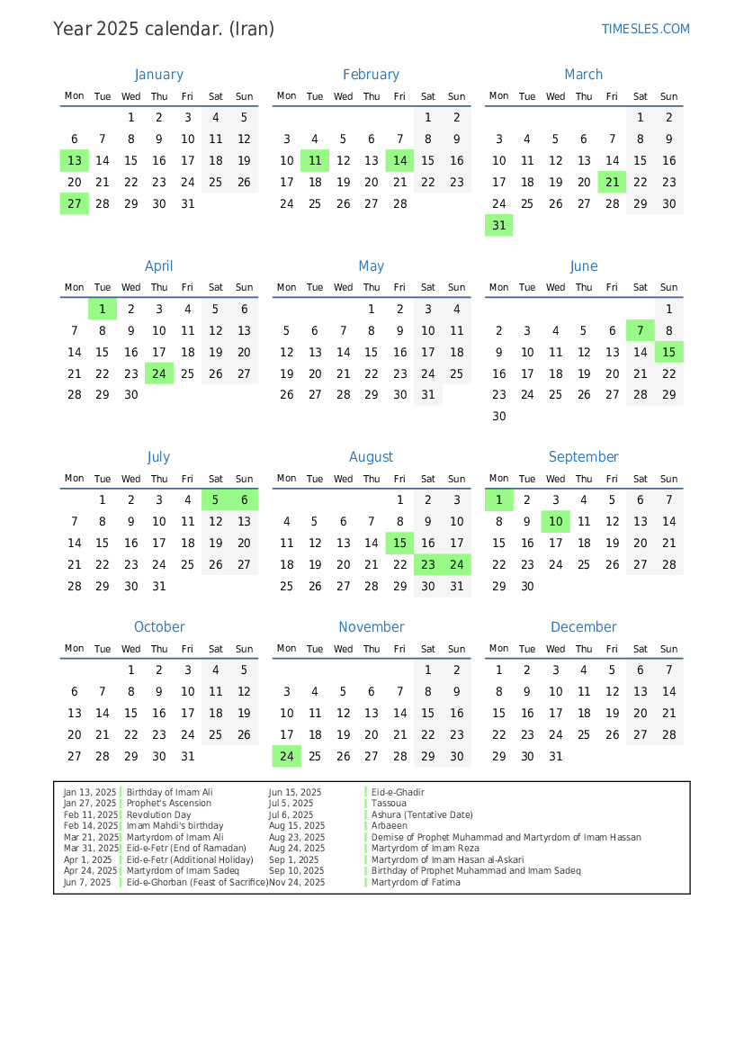 Mar 31, 2025 Eid-e-Fetr (End of Ramadan)