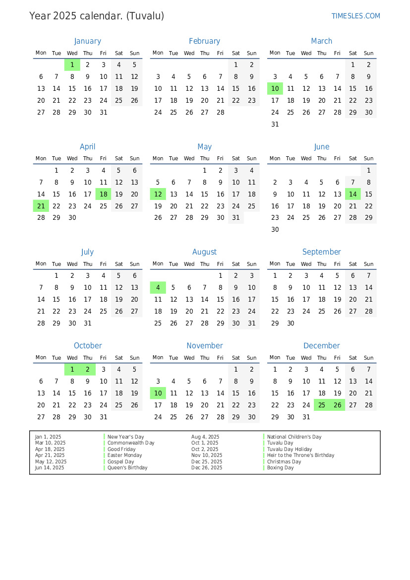 Oct 2, 2025 Tuvalu Day Holiday