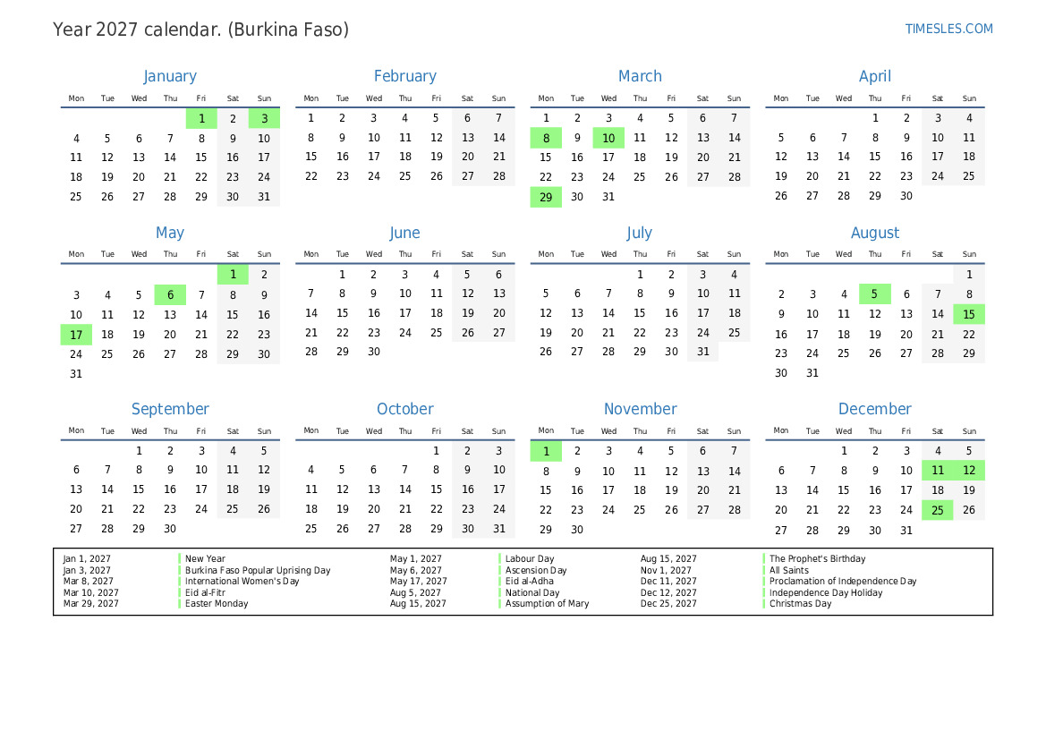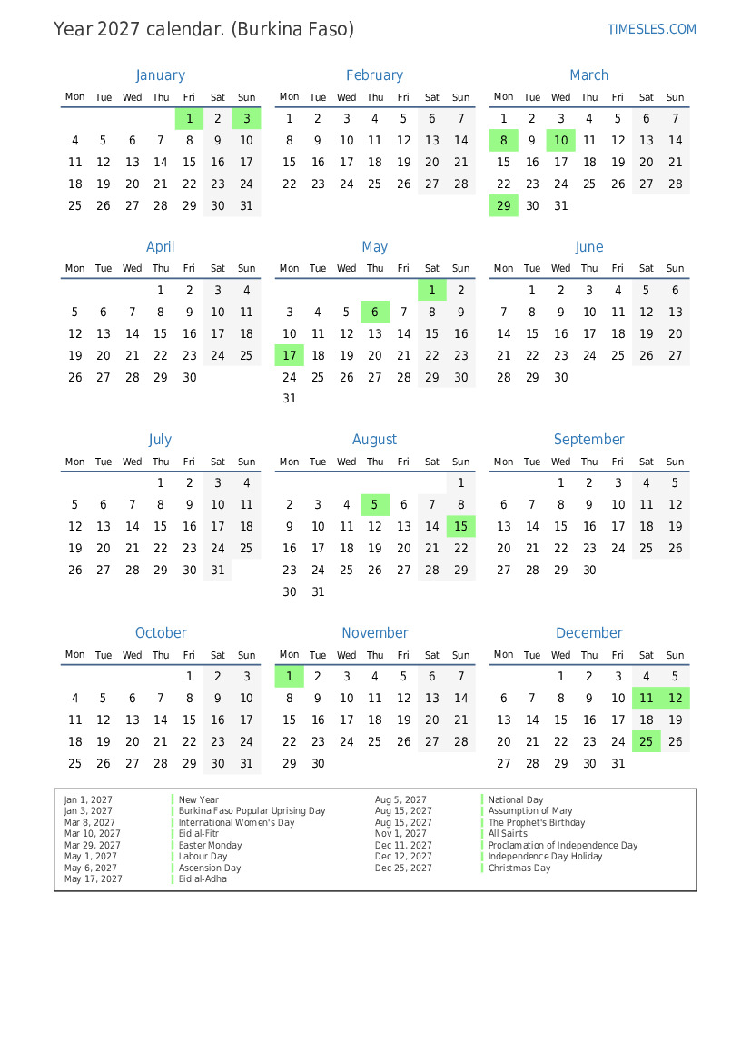 Jan 3, 2027 Burkina Faso Popular Uprising Day