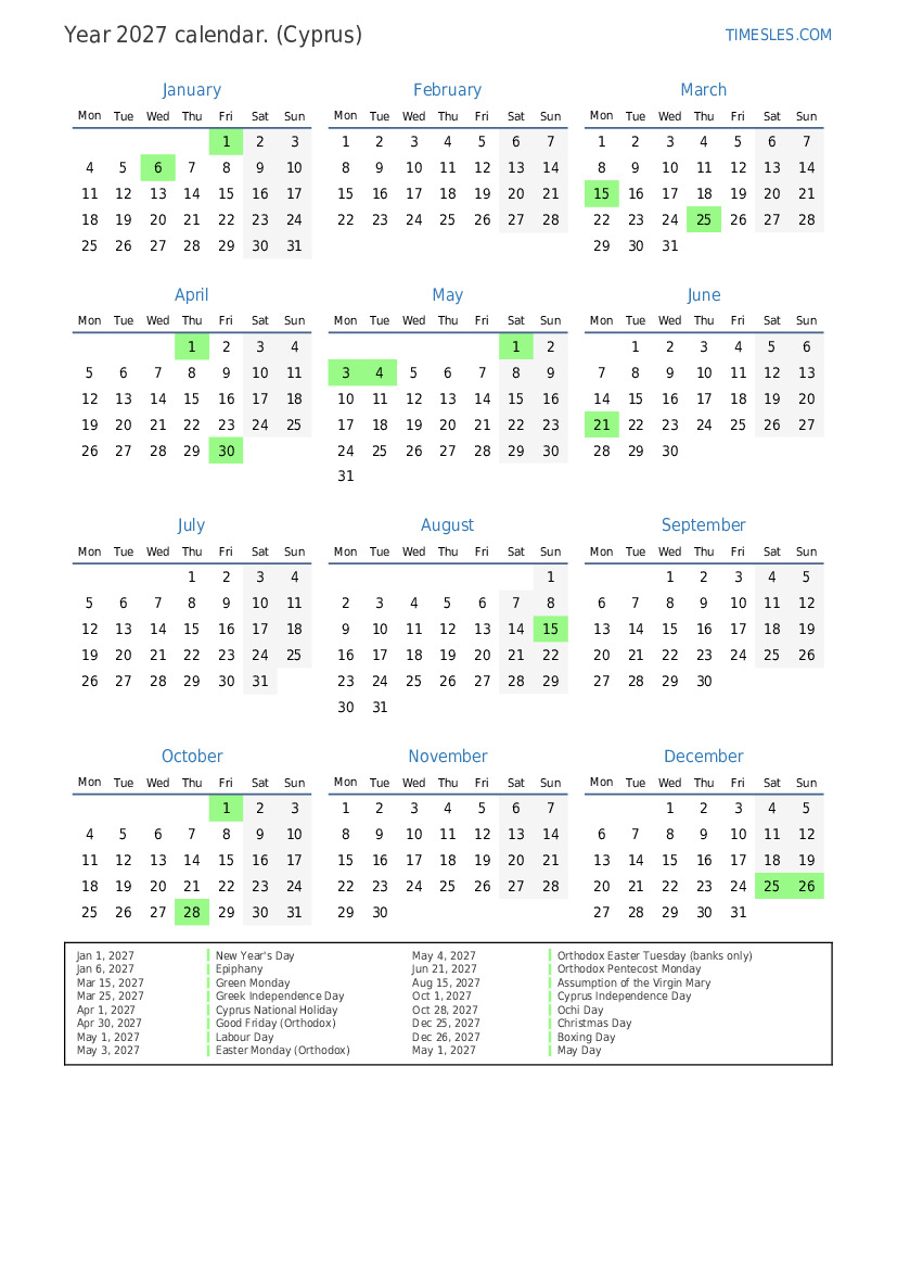 Oct 1, 2027 Cyprus Independence Day