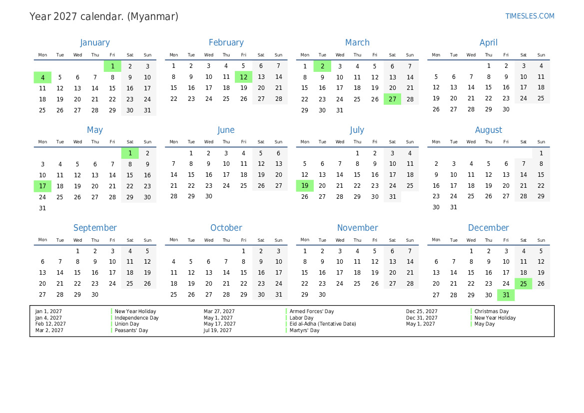 Jul 19, 2027 Martyrs' Day