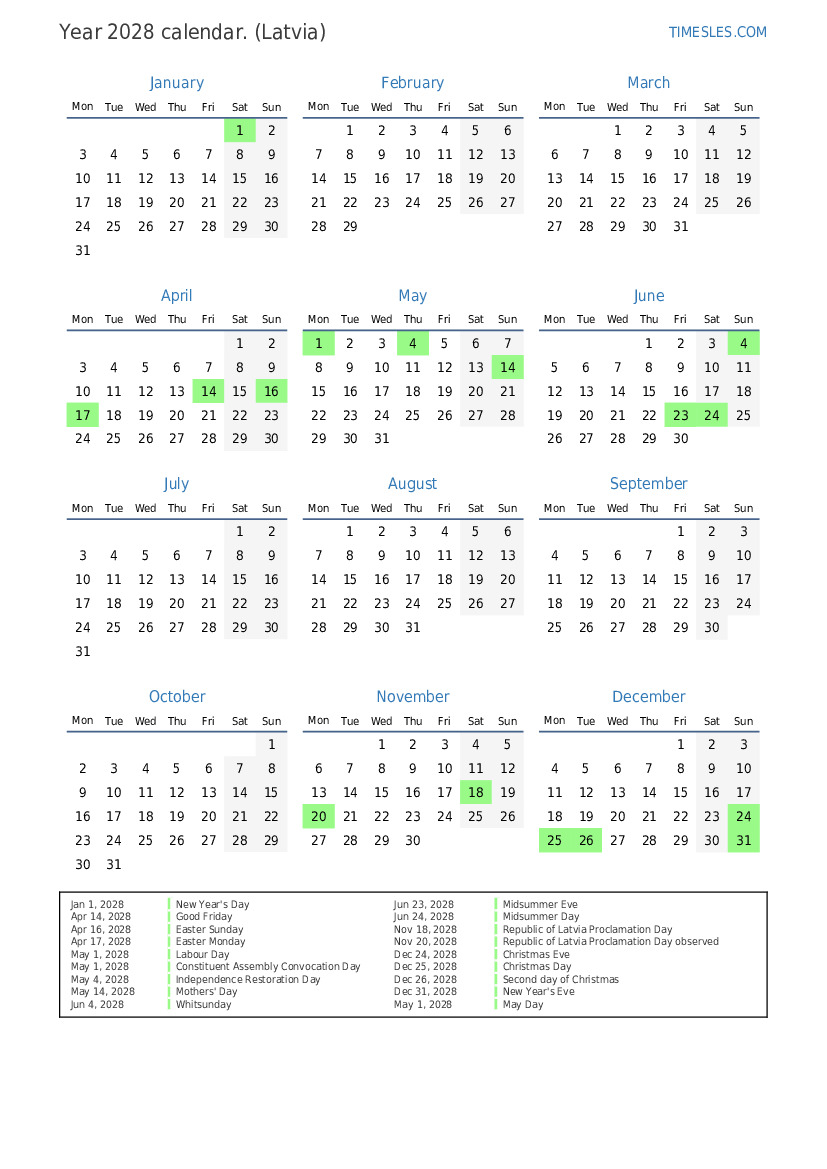 Nov 18, 2028 Republic of Latvia Proclamation Day