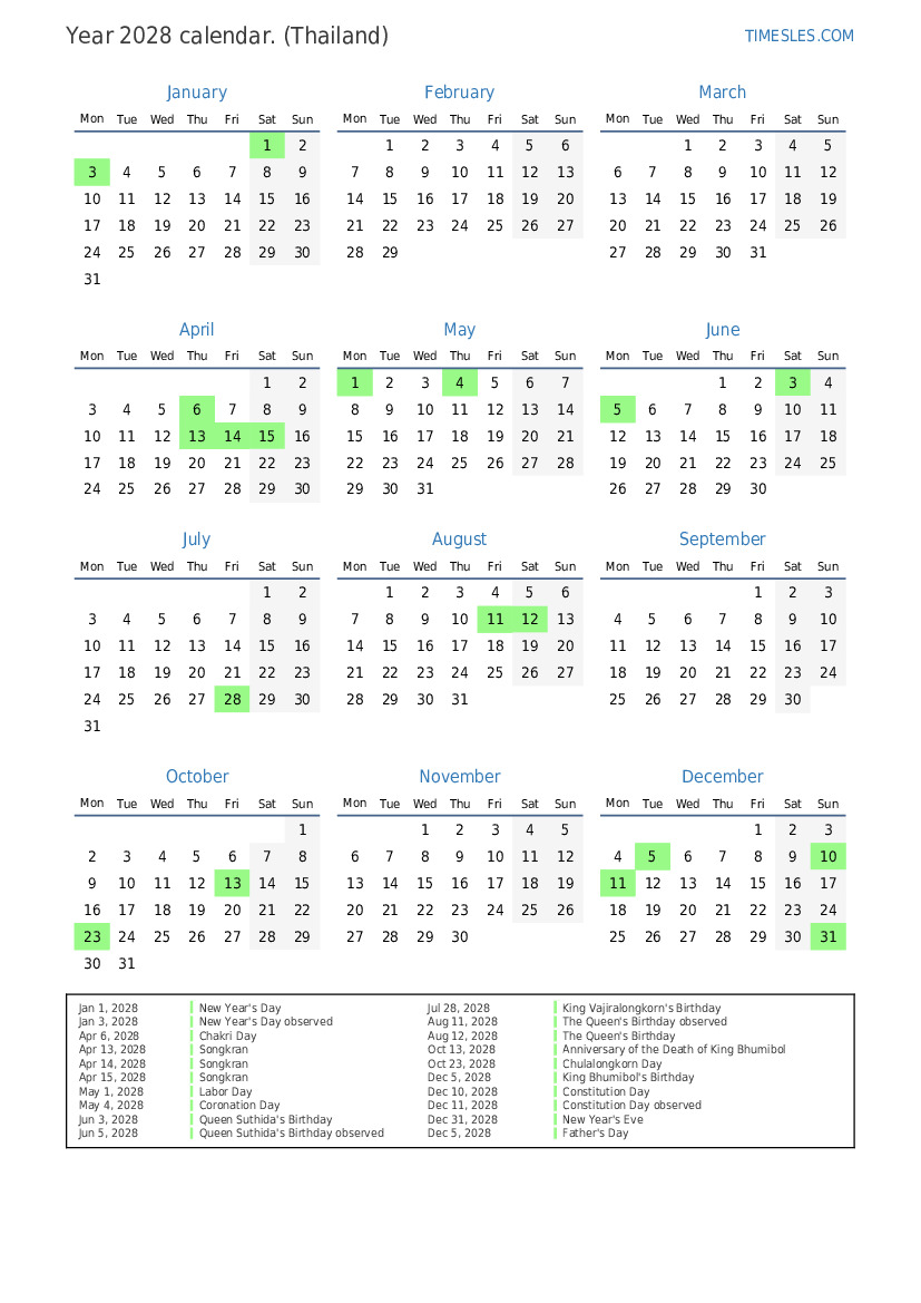 Jun 5, 2028 Queen Suthida's Birthday observed