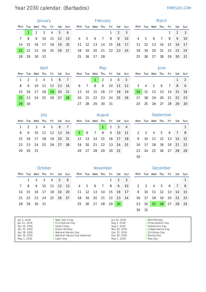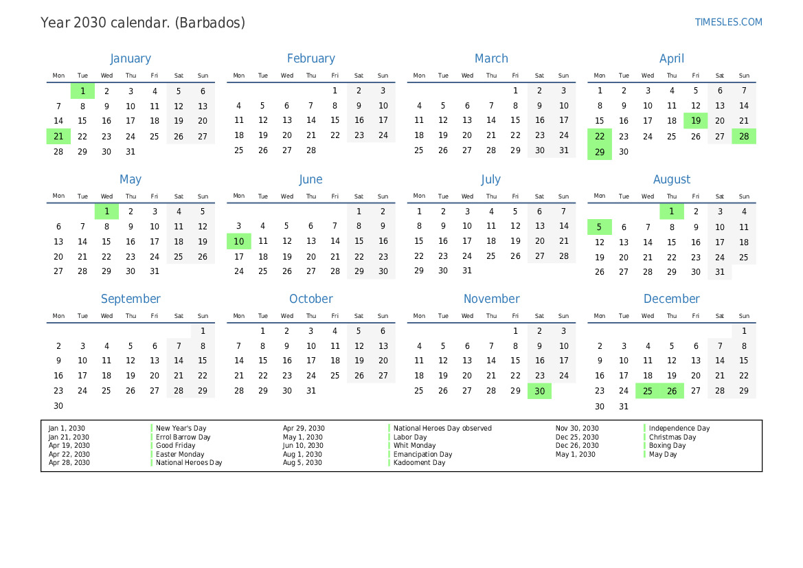 Aug 5, 2030 Kadooment Day