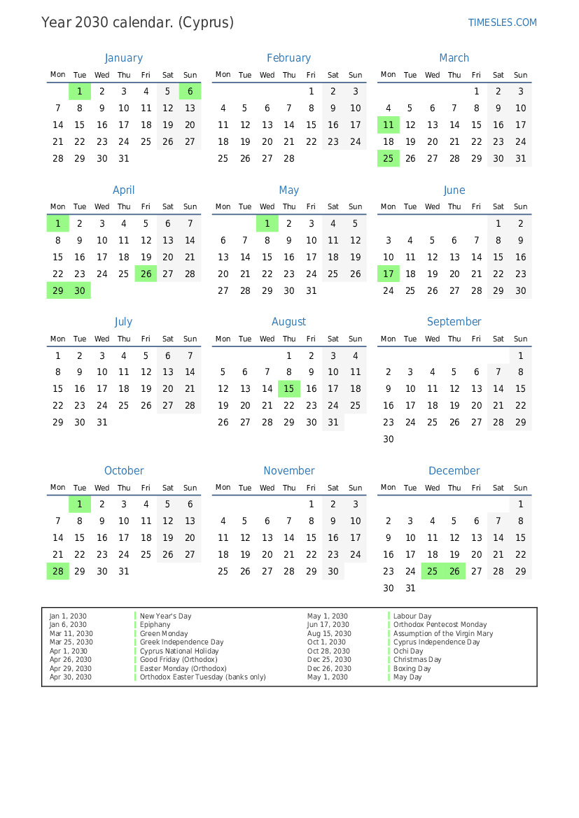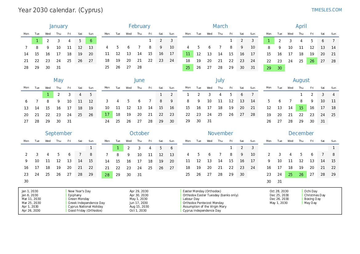 Apr 30, 2030 Orthodox Easter Tuesday (banks only)