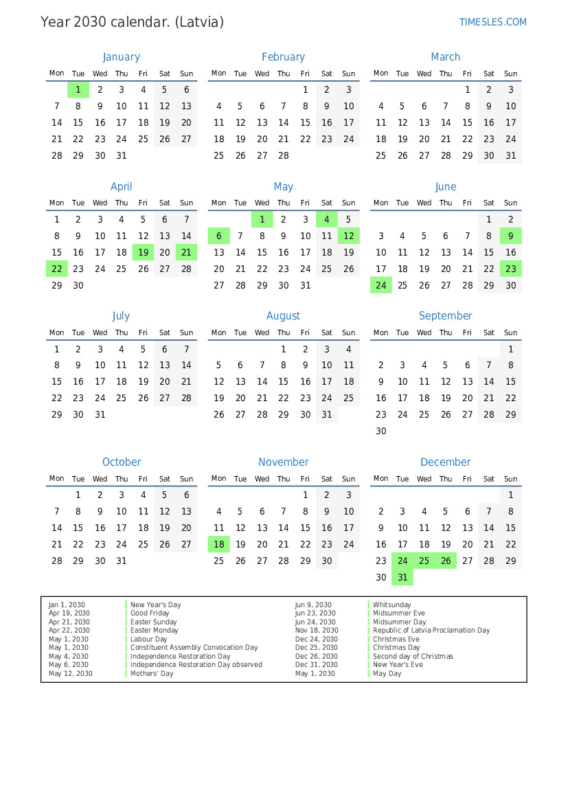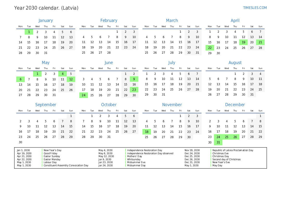 Nov 18, 2030 Republic of Latvia Proclamation Day
