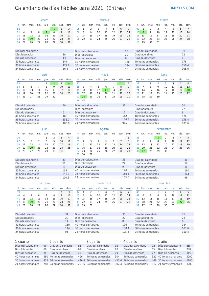 Días laborables | 20 |