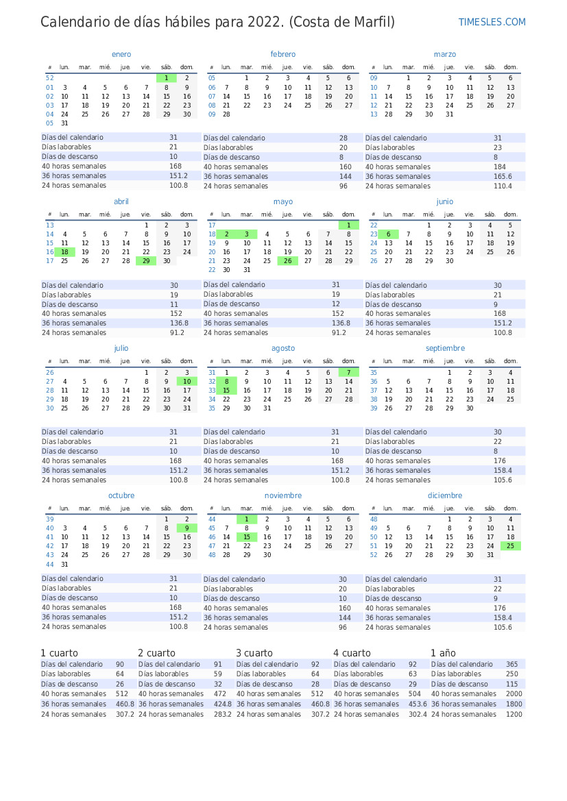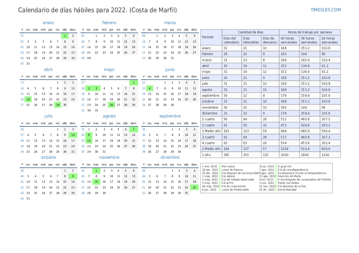 | Días laborables | 21 |