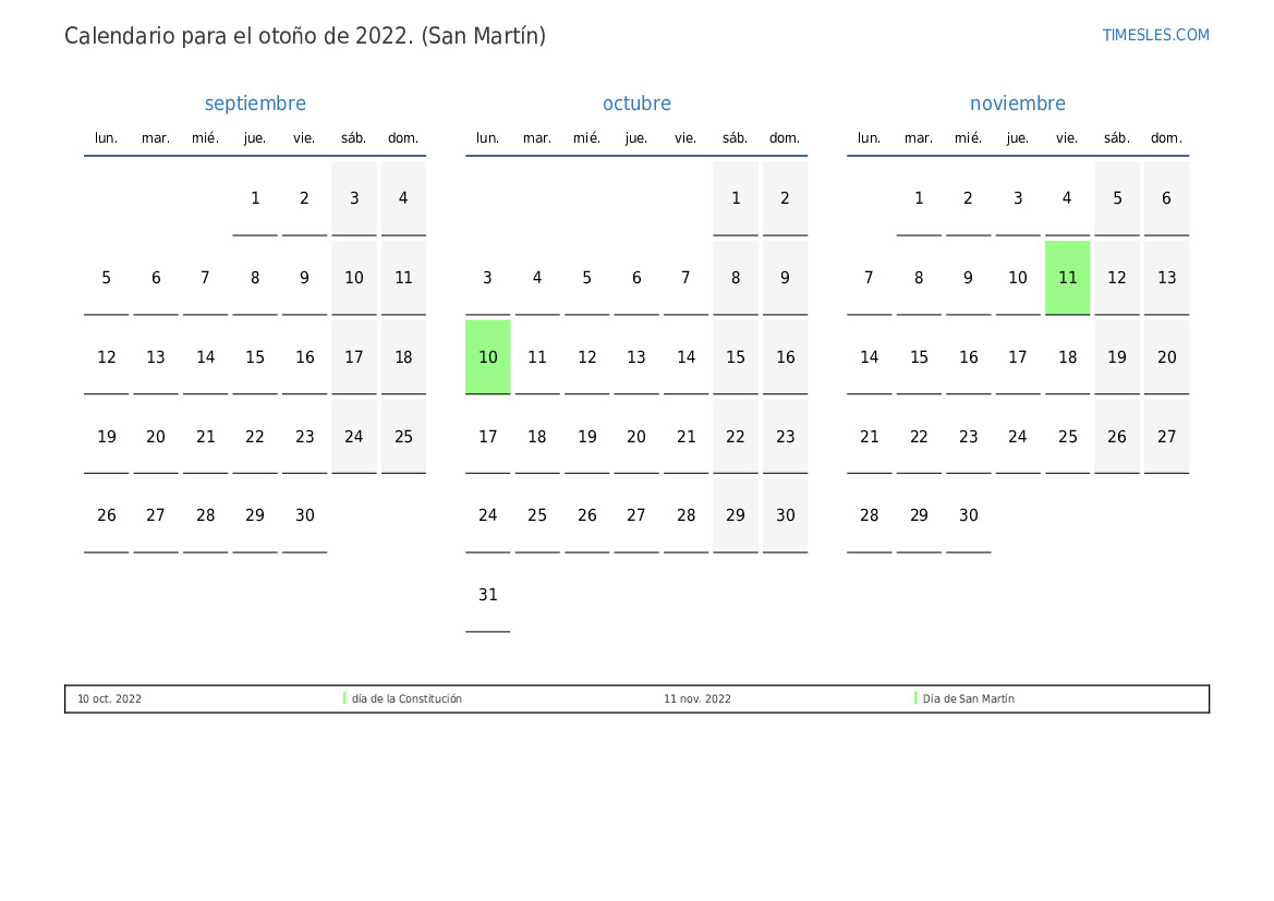 Descargue e imprima el calendario en PDF con festivos y fines de semana para el otoño de 2022 para Sint Maarten
