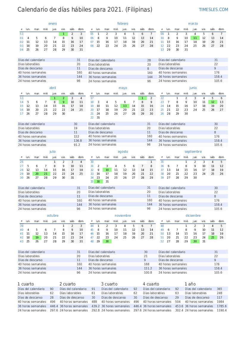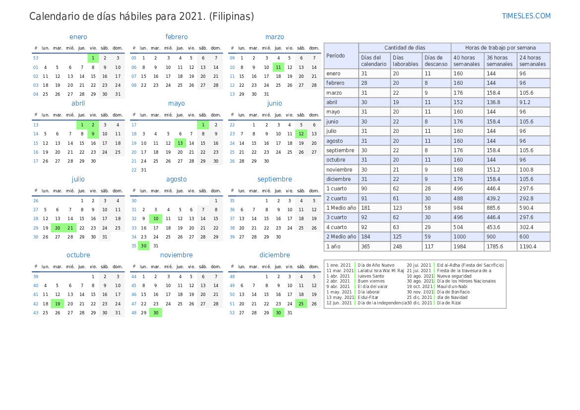 Días laborables de diciembre de 2021 para Filipinas