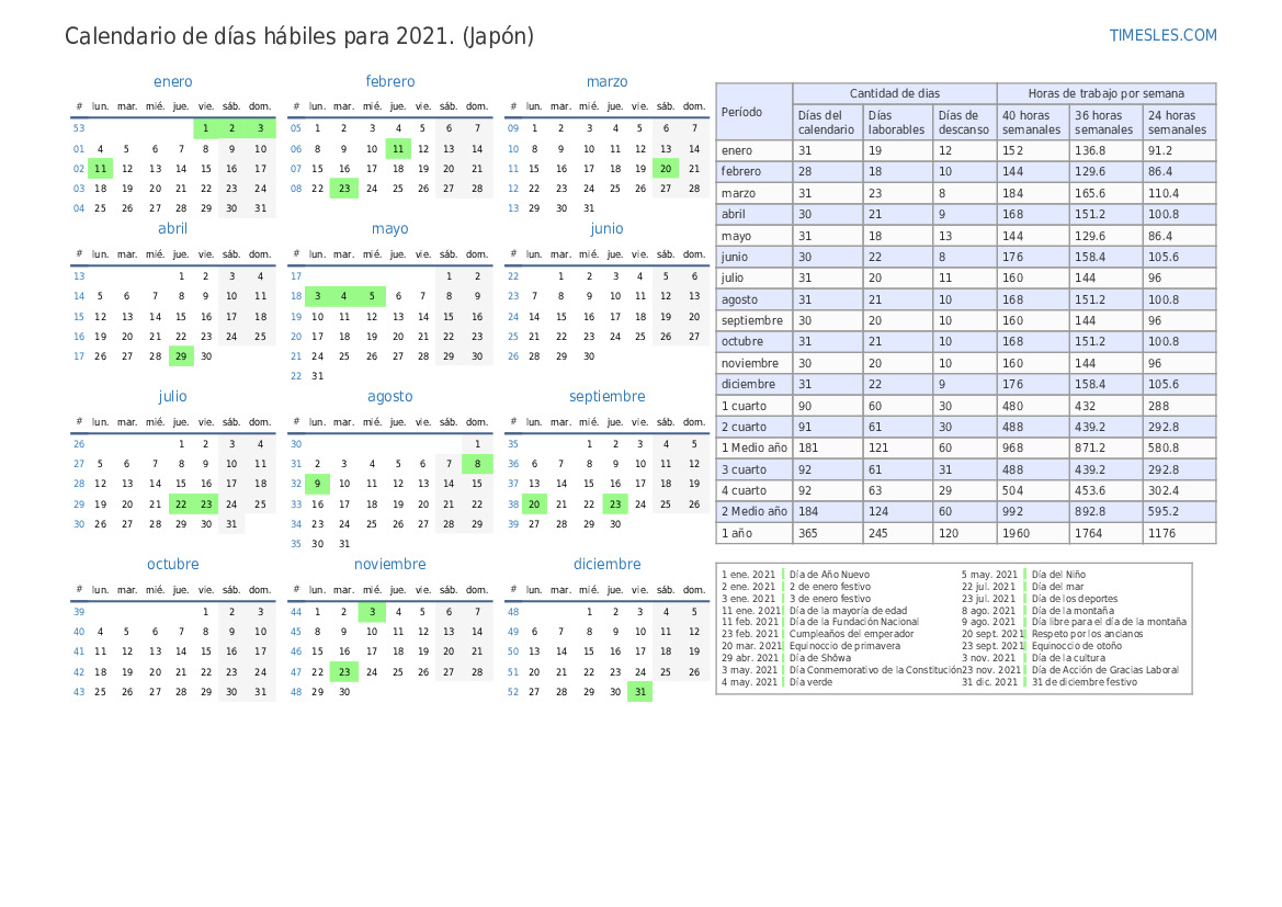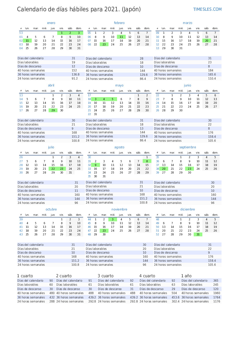 | Días laborables | 21 |