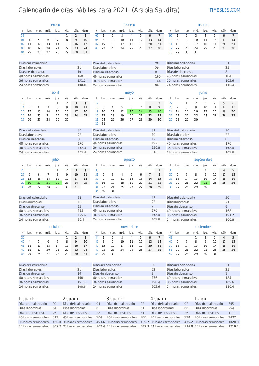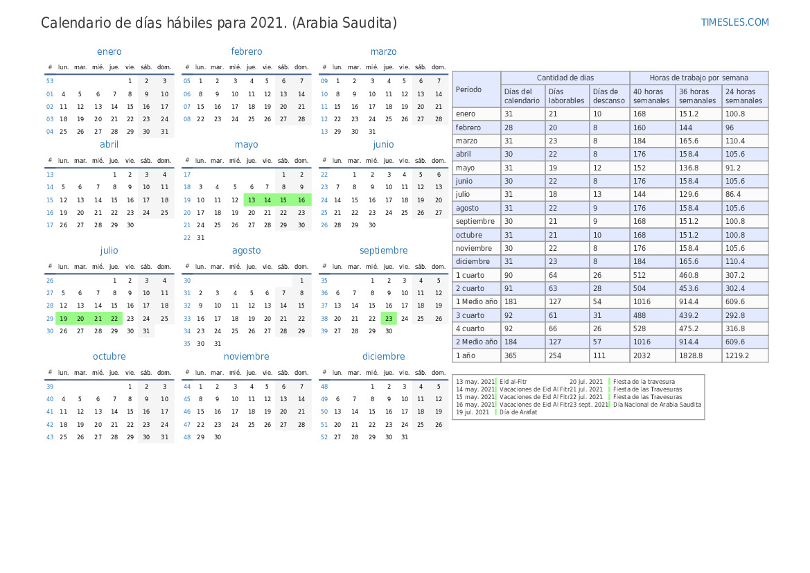 | Días laborables | 21 |