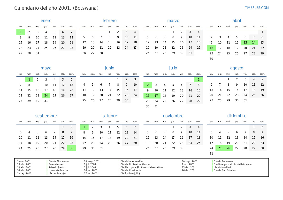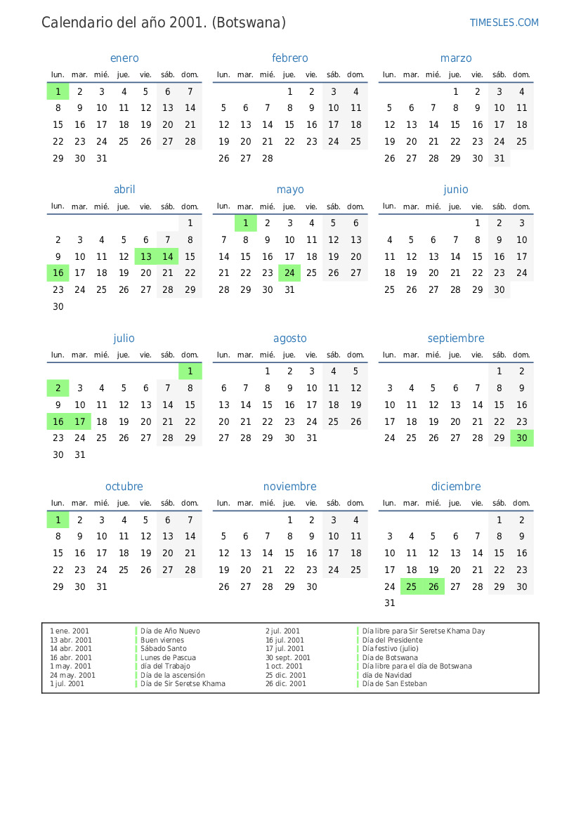 2 jul. 2001 Día libre para Sir Seretse Khama Day