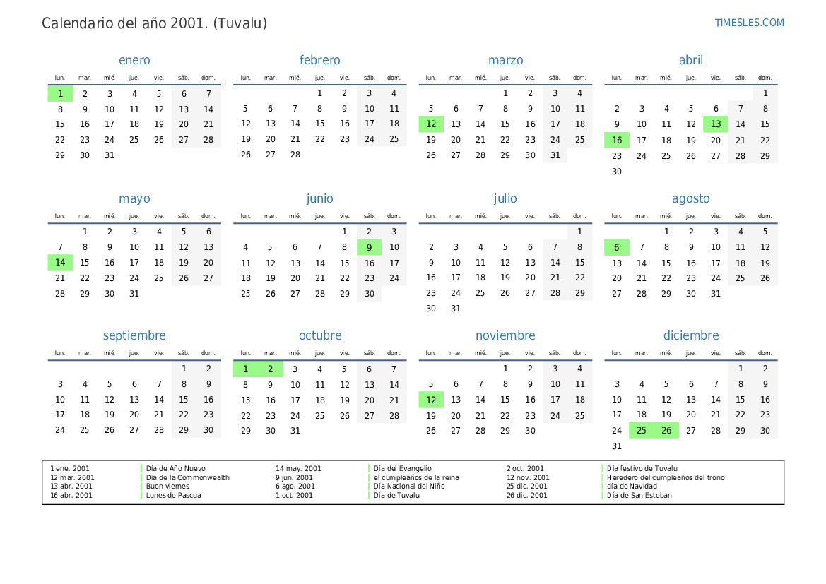 2 oct. 2001 Día festivo de Tuvalu