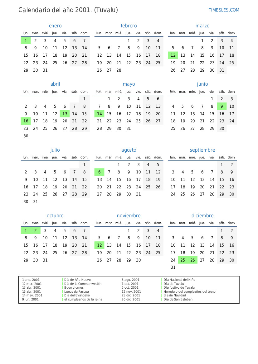 1 oct. 2001 Día de Tuvalu
