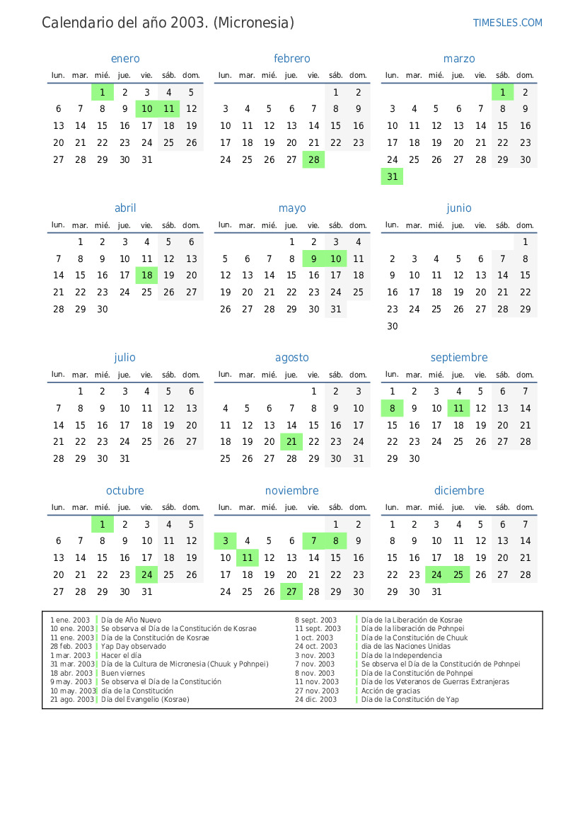 31 mar. 2003 Día de la Cultura de Micronesia (Chuuk y Pohnpei)