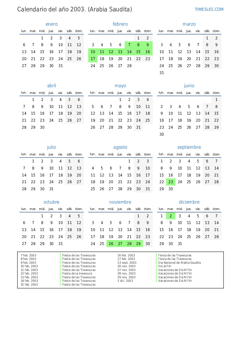 27 nov. 2003 Vacaciones de Eid Al Fitr