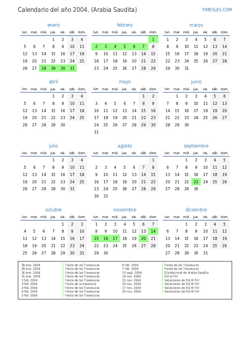 19 nov. 2004 Eid al-Fitr Holiday (solo en el sector público)