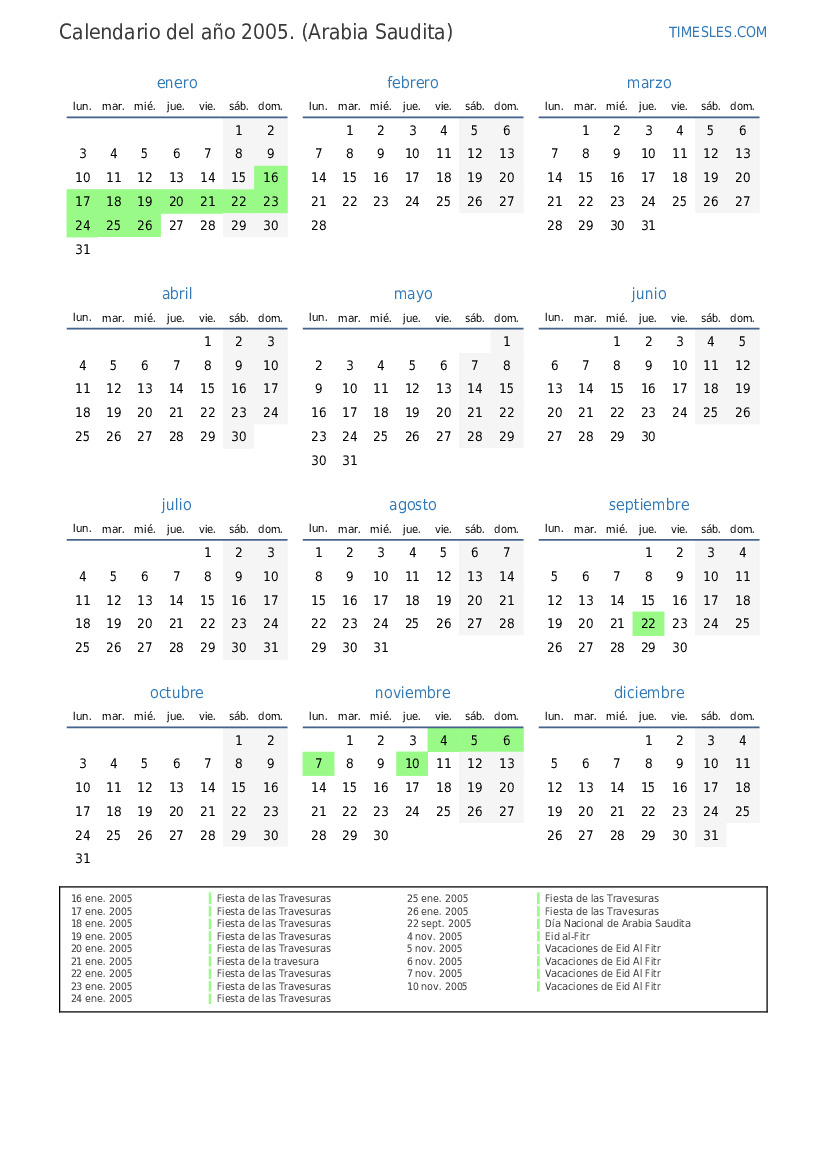 9 nov. 2005 Eid al-Fitr Holiday (solo en el sector público)
