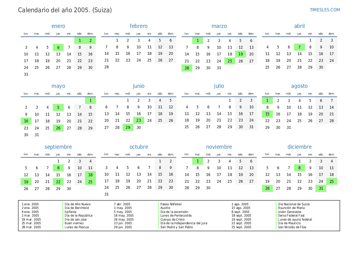 1 ago. 2005 Día Nacional de Suiza