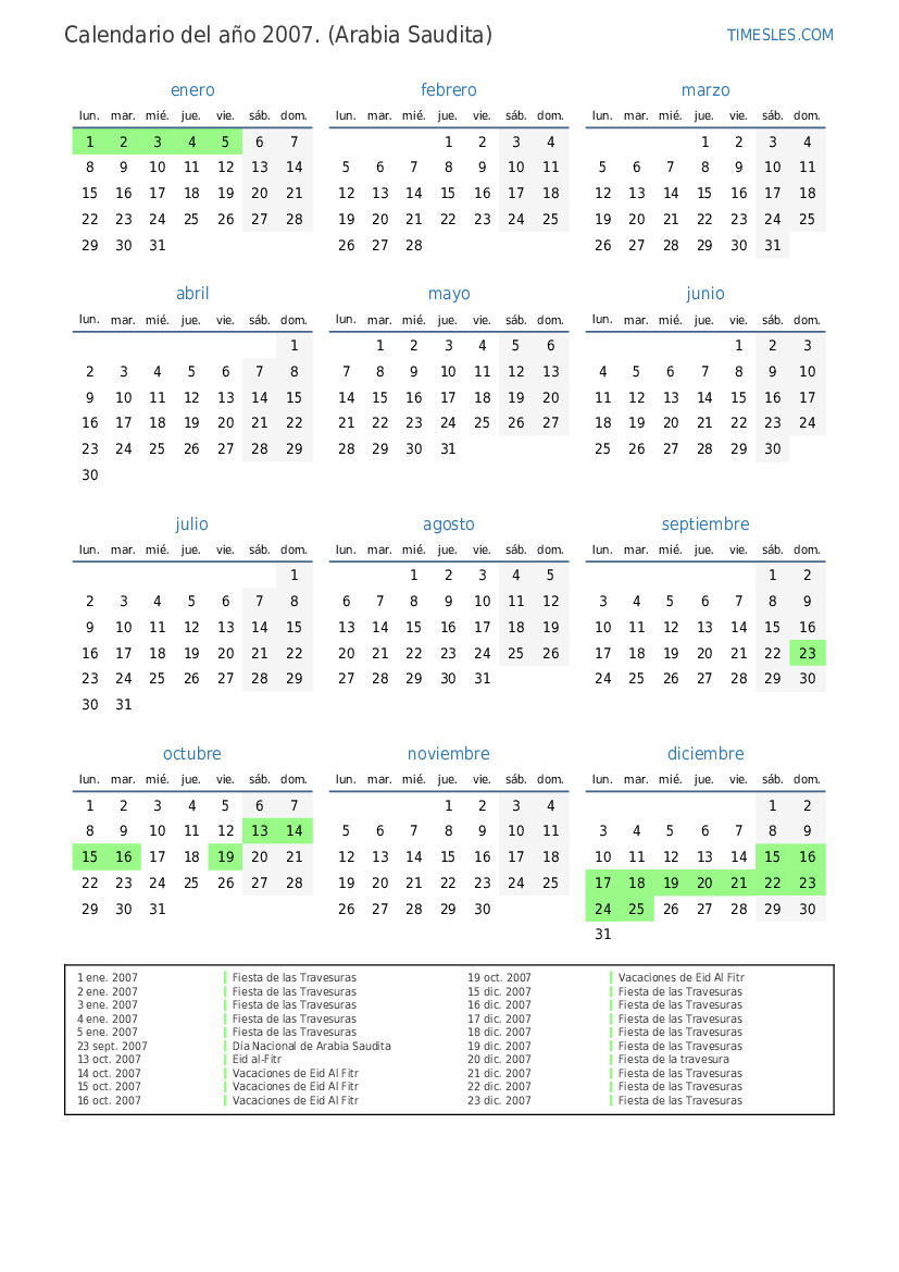 14 oct. 2007 Vacaciones de Eid Al Fitr