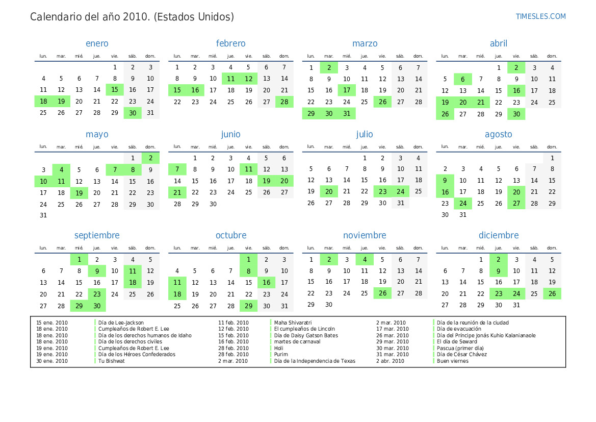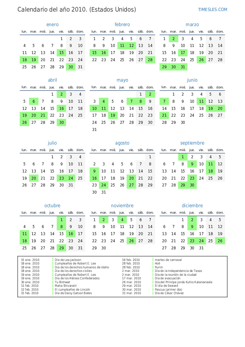 1 ene. 2010 Día de Año Nuevo