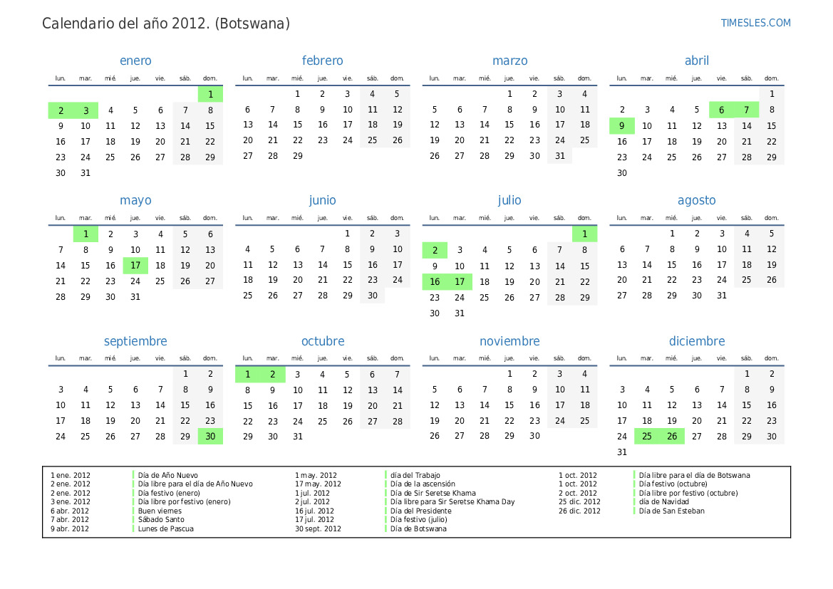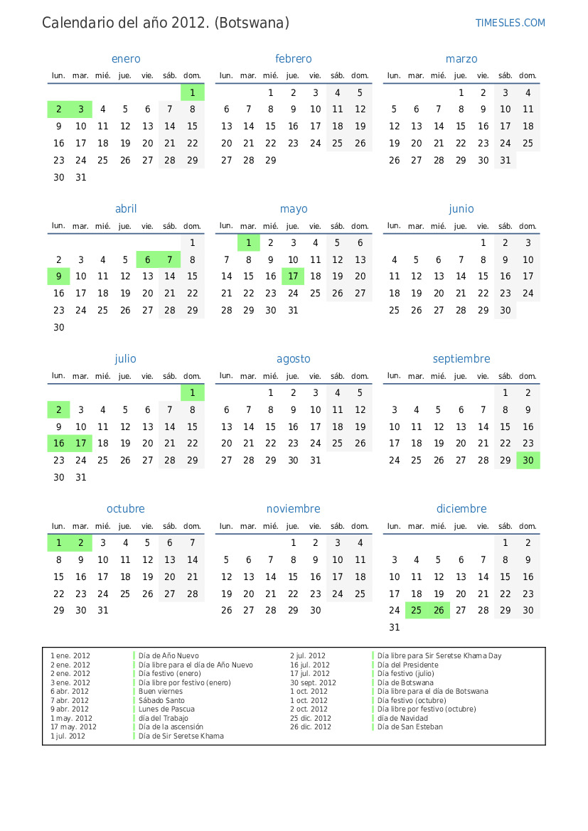 1 oct. 2012 Día libre para el día de Botswana