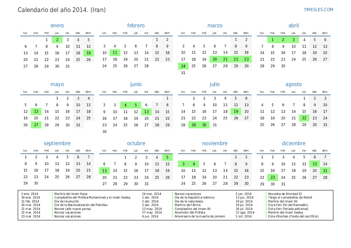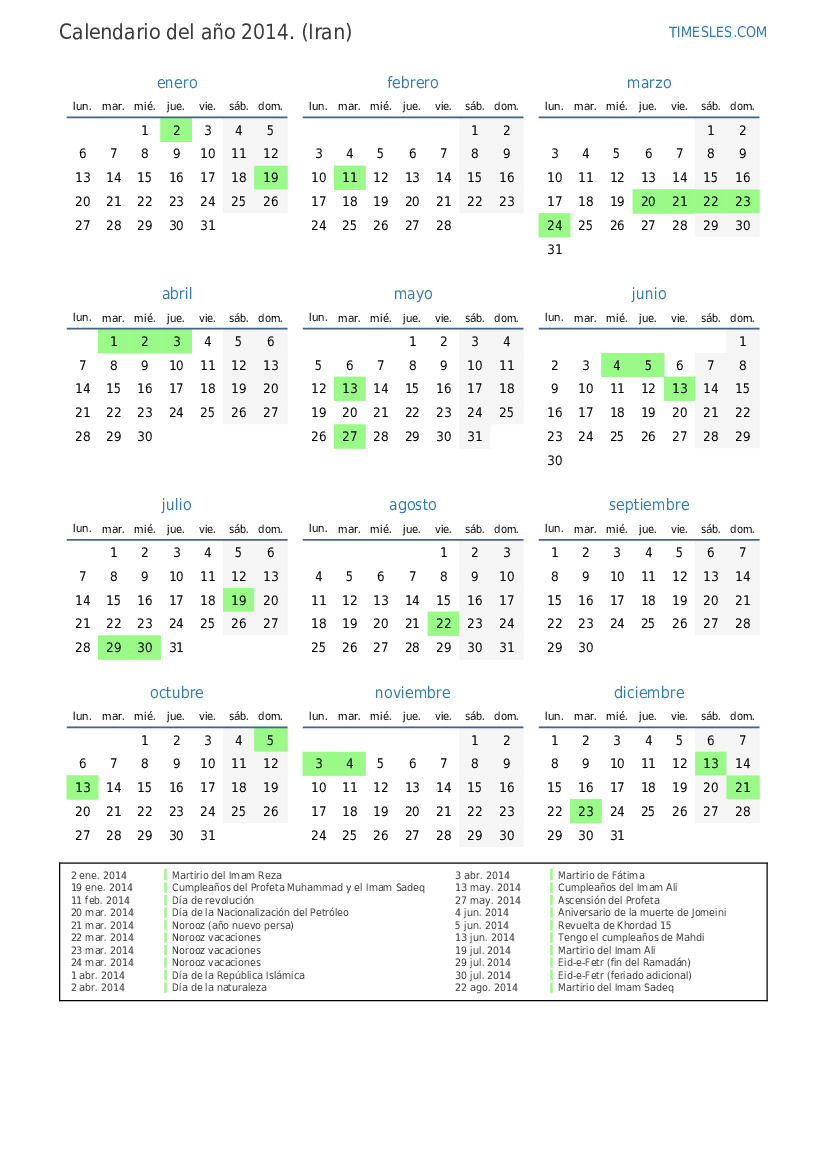 30 jul. 2014 Eid-e-Fetr (feriado adicional)