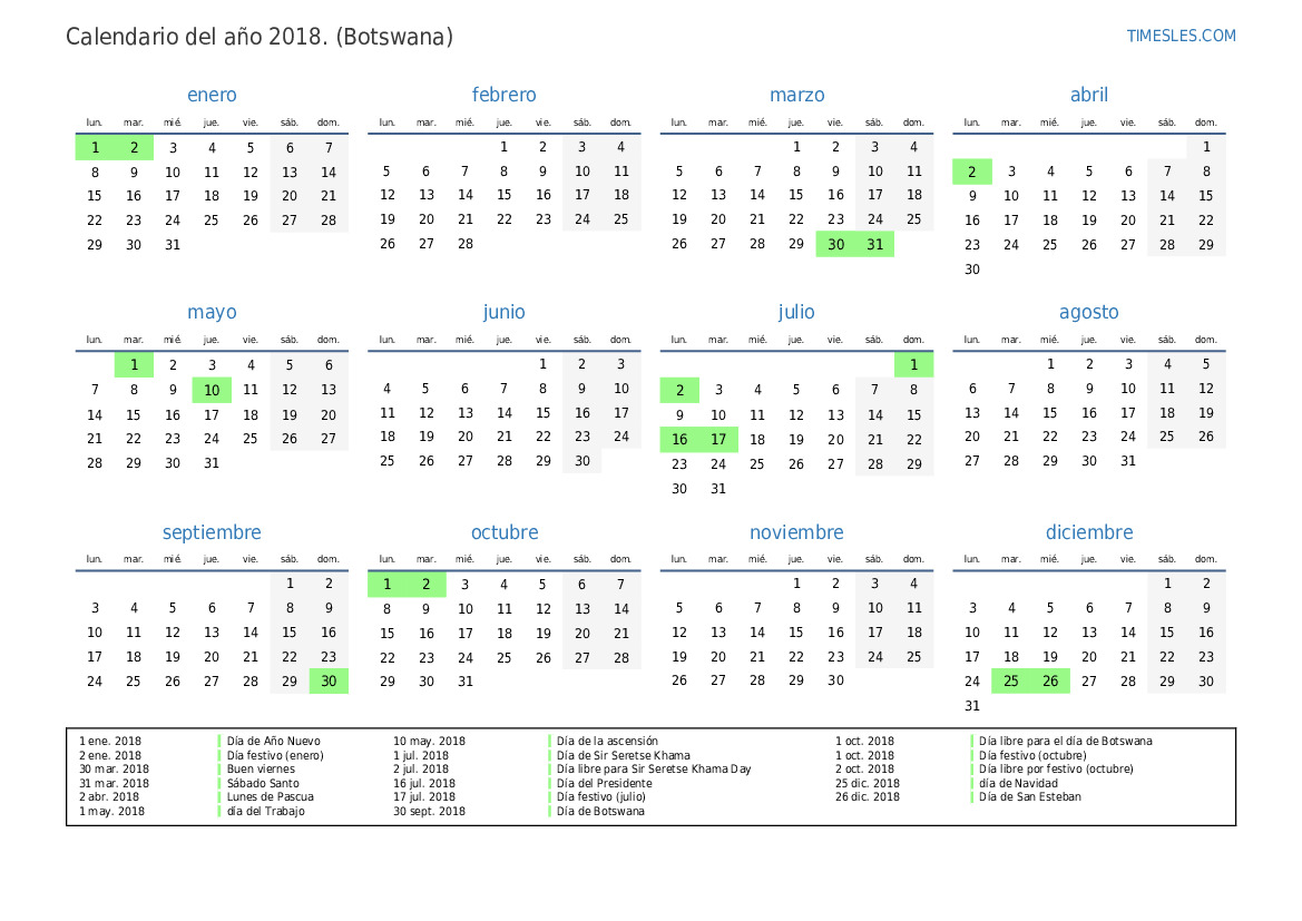 1 oct. 2018 Día libre para el día de Botswana