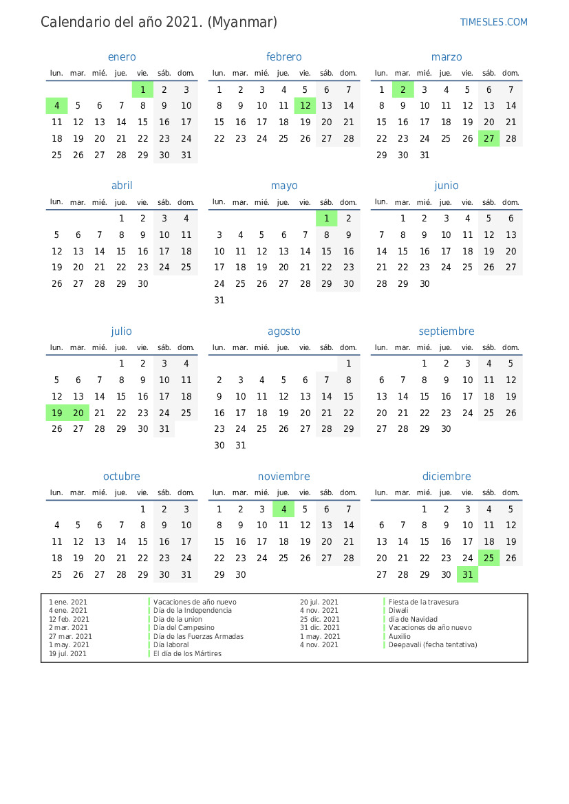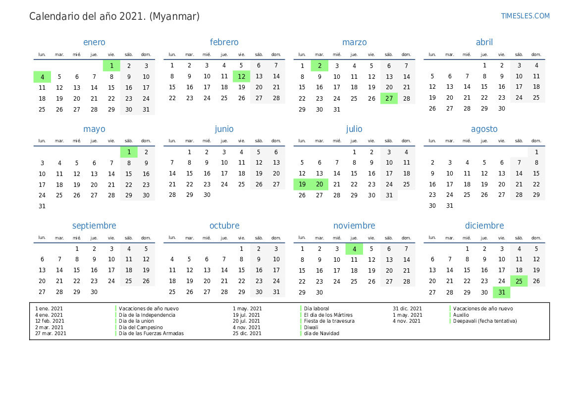 4 nov. 2021 Deepavali (fecha tentativa)
