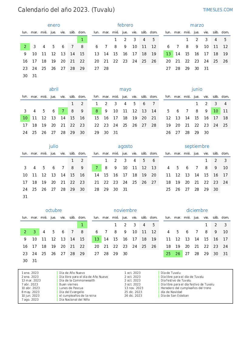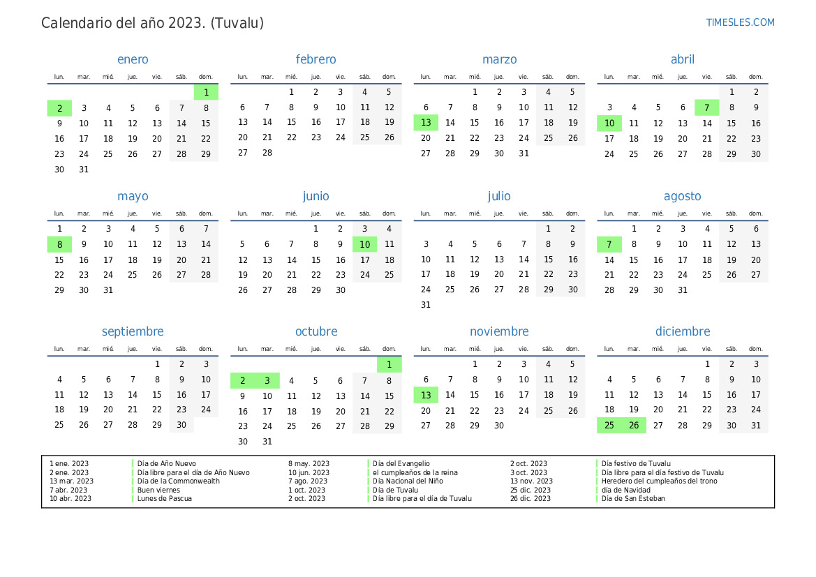 3 oct. 2023 Día libre para el día festivo de Tuvalu