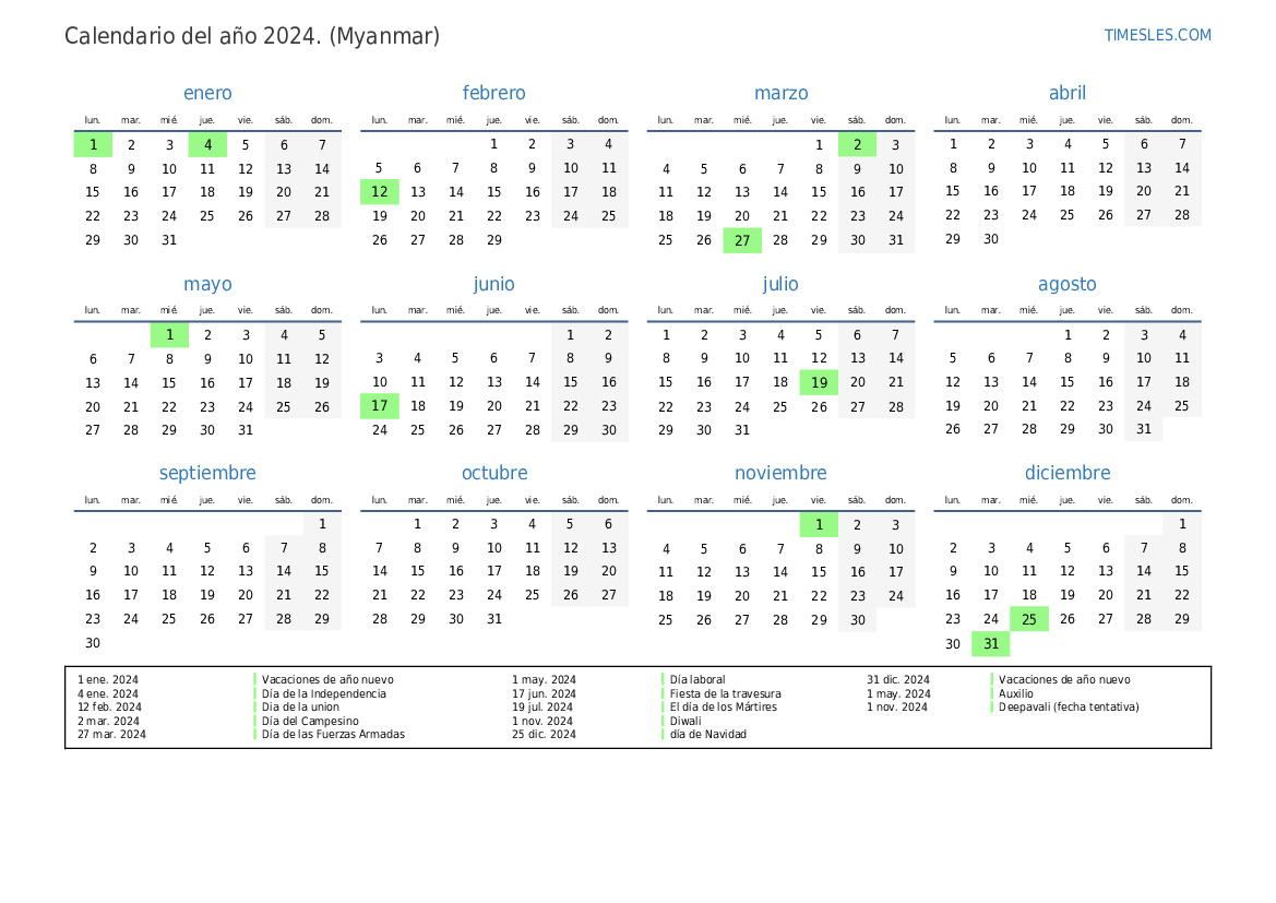 1 nov. 2024 Deepavali (fecha tentativa)