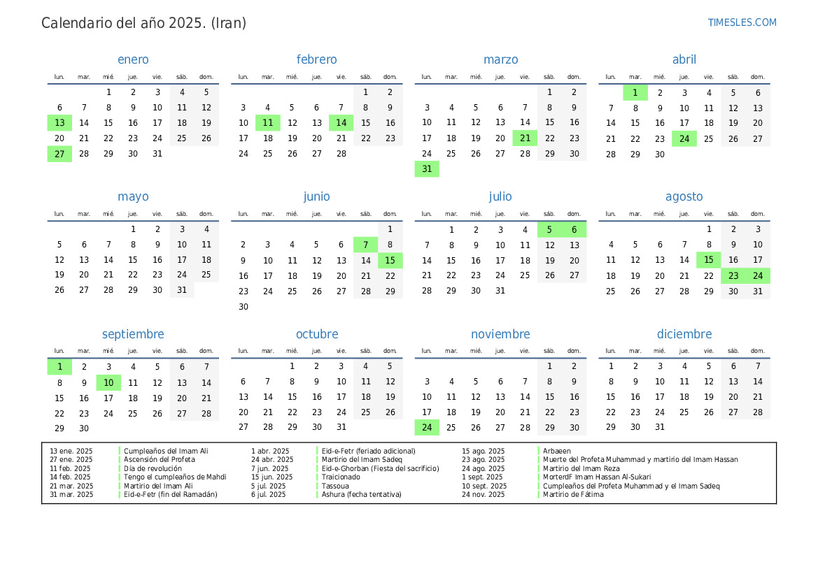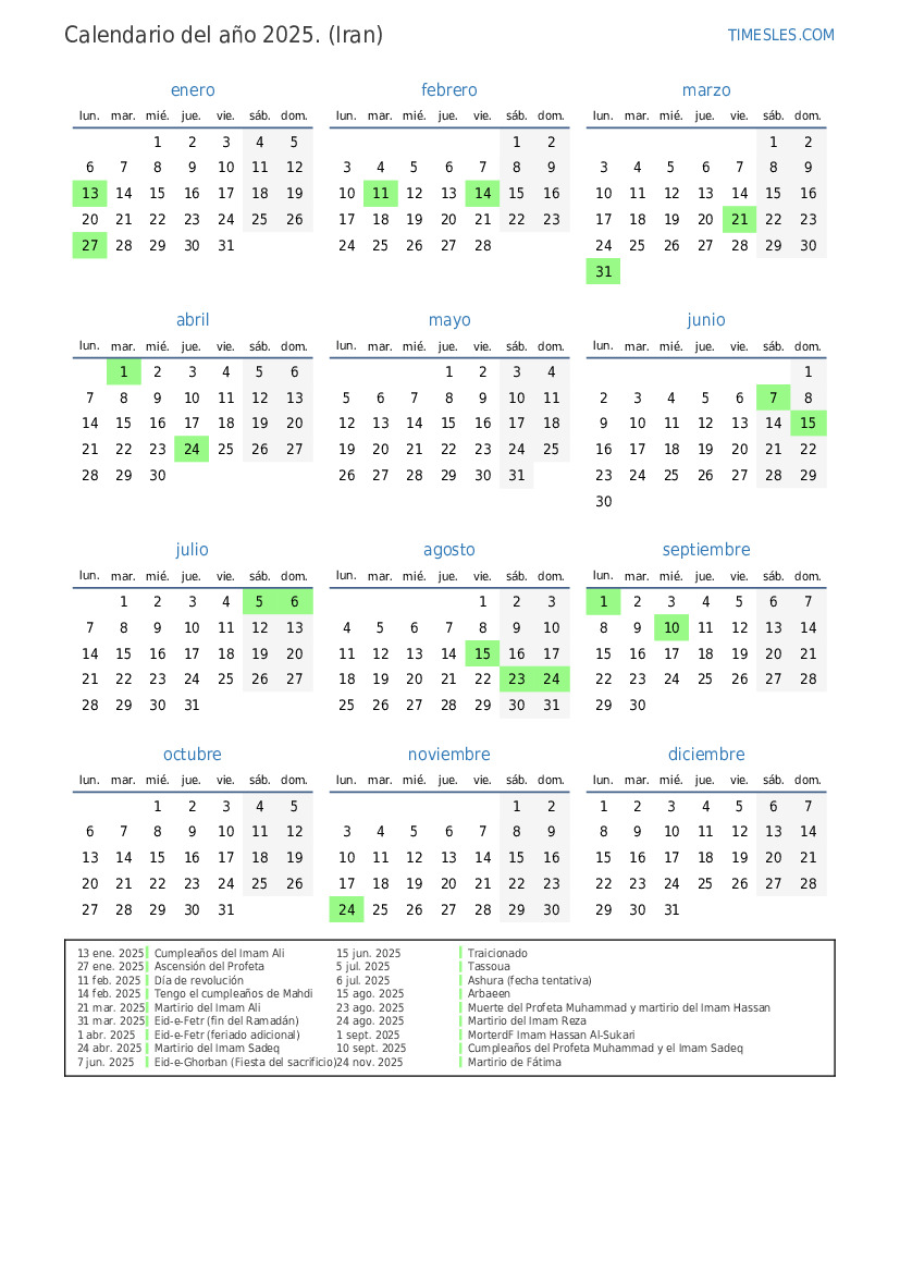 31 mar. 2025 Eid-e-Fetr (fin del Ramadán)