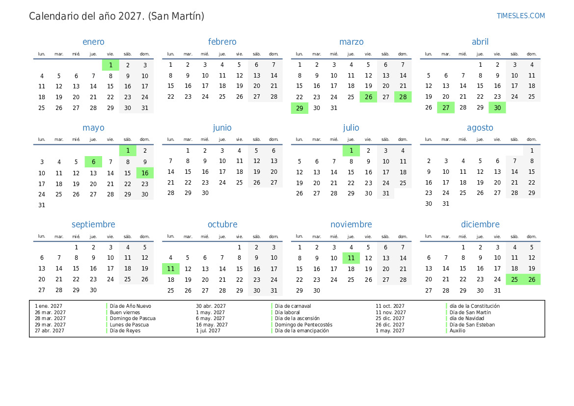11 nov. 2027 Día de San Martín