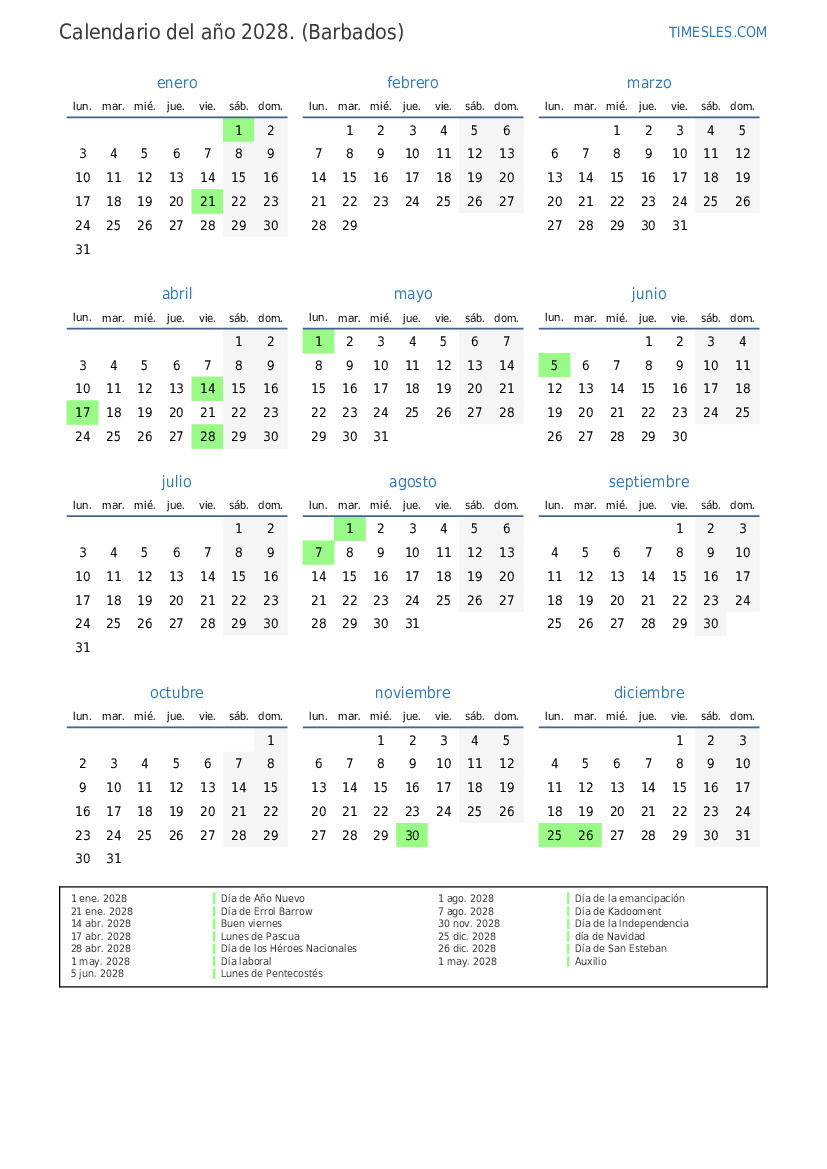 21 ene. 2028 Día de Errol Barrow