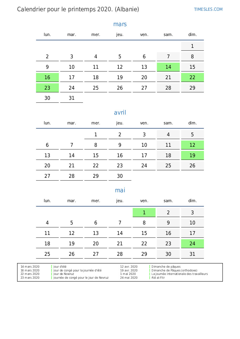 23 mars 2020 Journée de congé pour le jour de Nevruz