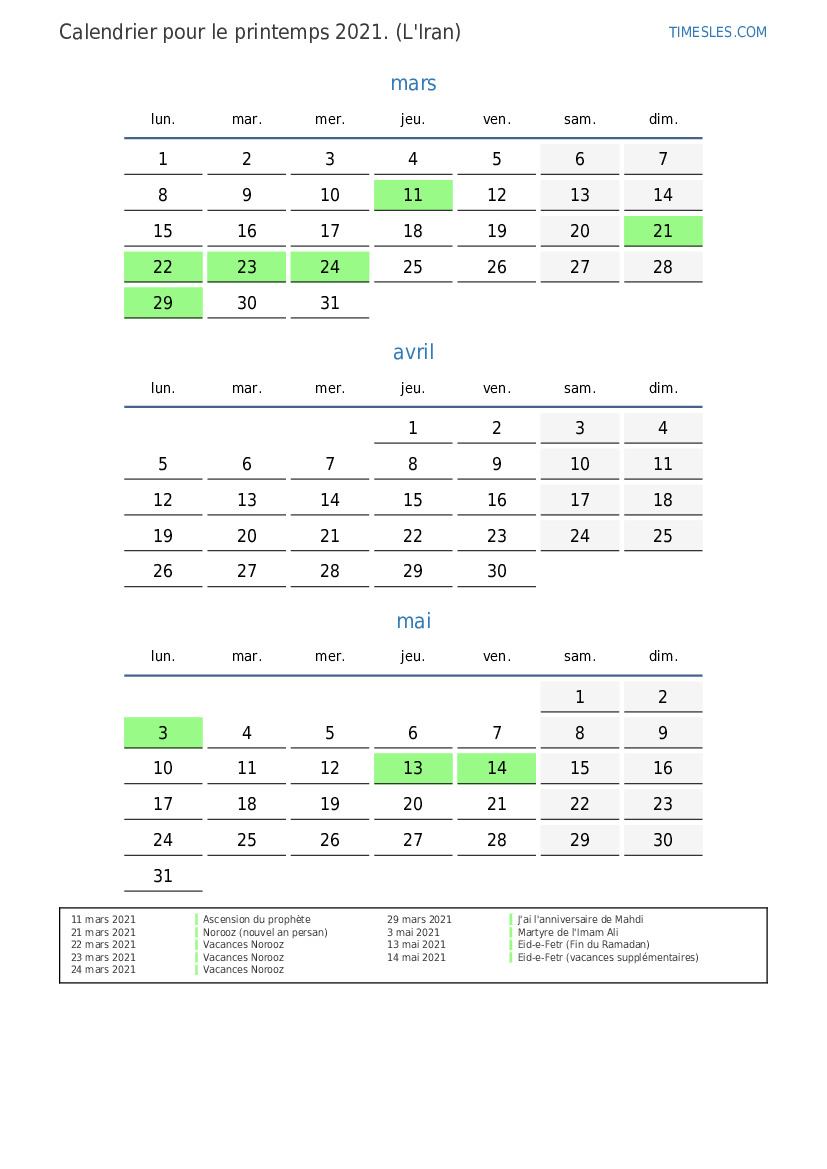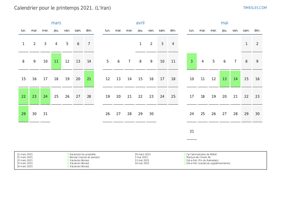 14 mai 2021 Eid-e-Fetr (vacances supplémentaires)