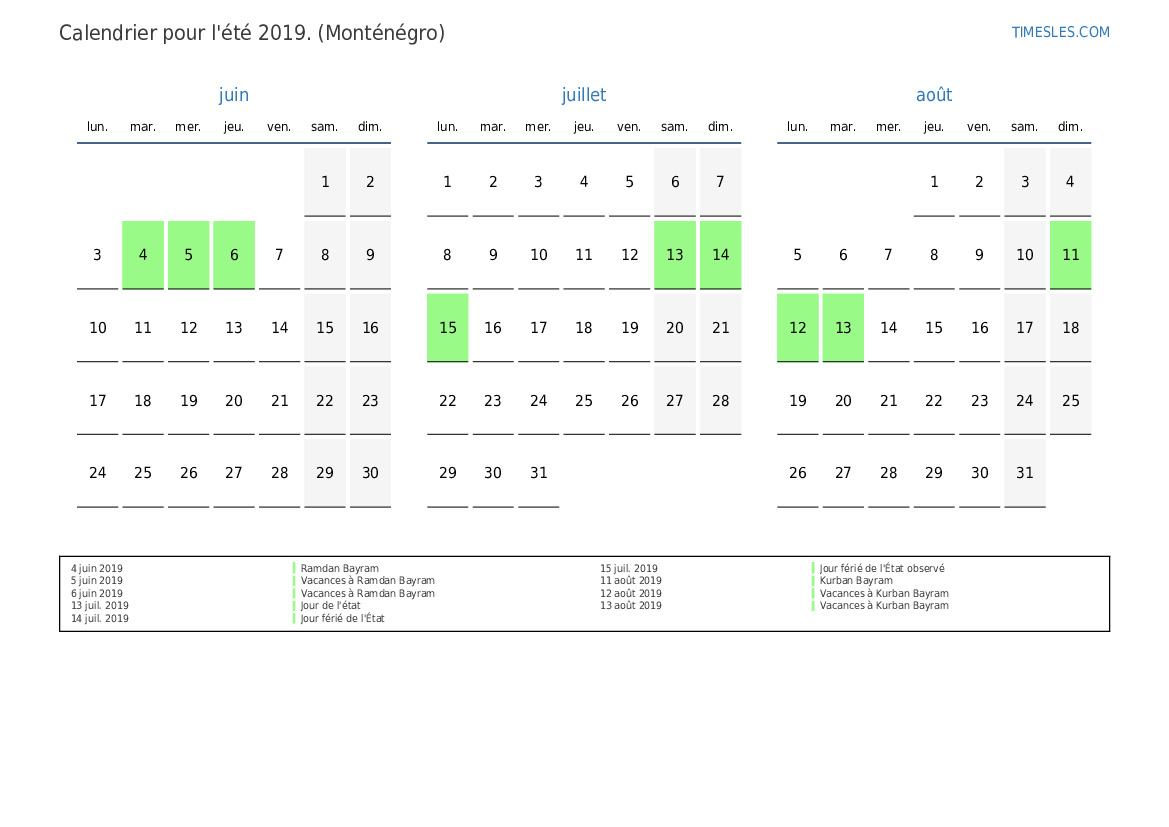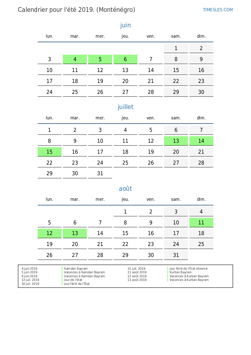 14 juil. 2019 Jour férié de l'État