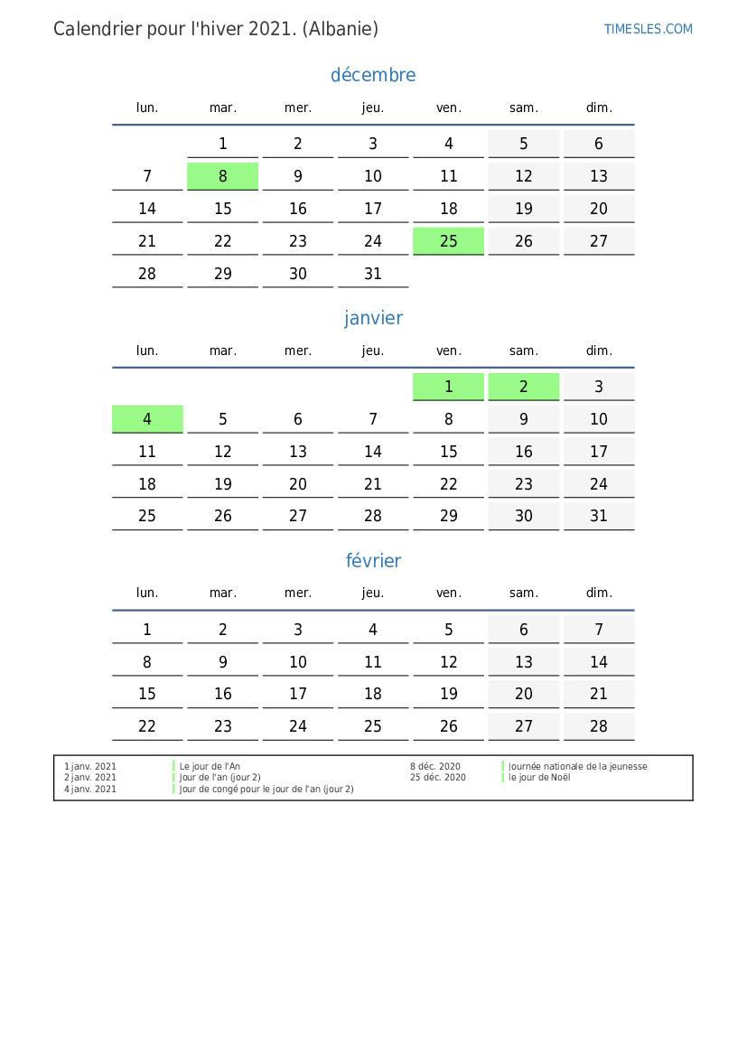 Calendrier des jours fériés et des week-ends pour l'été 2021 pour l'Albanie