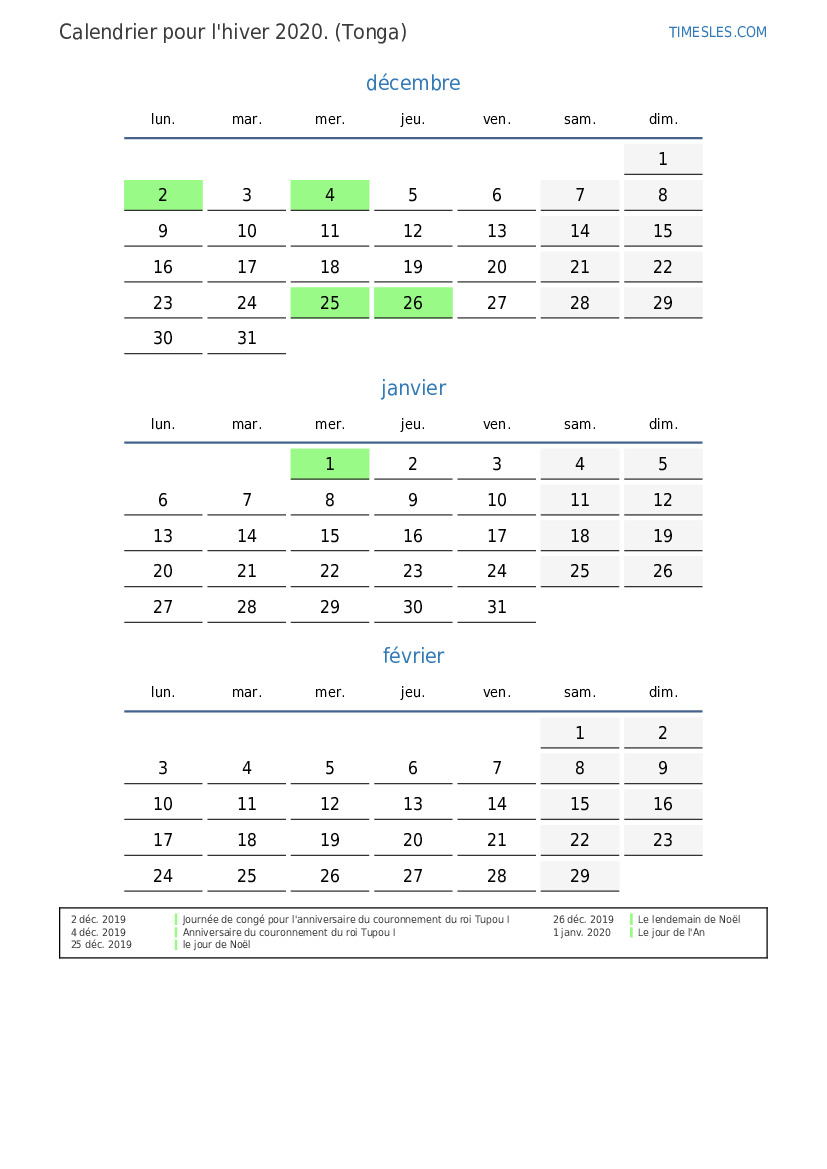 2 déc. 2019 Journée de congé pour l'anniversaire du couronnement du roi Tupou I