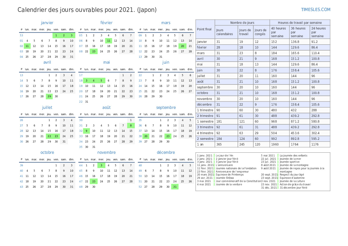 | Jours de travail | 21 |