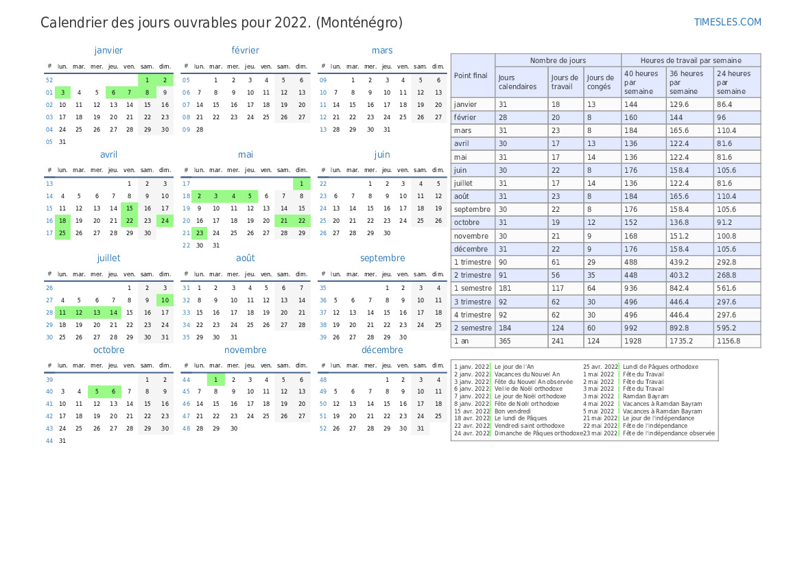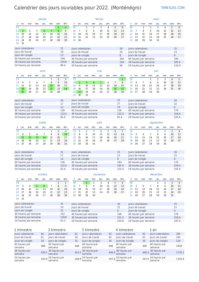 | Jours de travail | 22 |